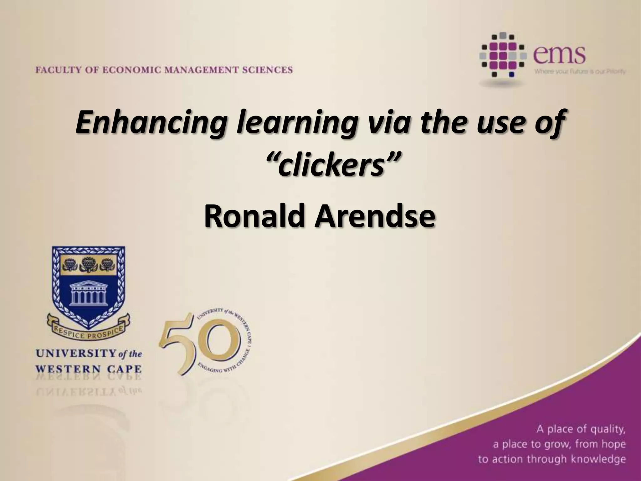 This document discusses using clicker technology, also known as interactive learner systems (ILS), to enhance student learning and engagement. Some risks of using this new technology include lecturers feeling a lack of expertise and control, and students potentially losing focus of intended learning outcomes. The rationale for the study is that foundation students may feel inadequate due to special entrance requirements, language barriers, and culture shock, leading to non-participation in lectures. Clickers allow for anonymous participation and involvement of all students. However, challenges in using clickers include potential technical issues, the time needed to familiarize students with the system, writing effective multiple choice questions, and difficulties managing class-wide discussions.