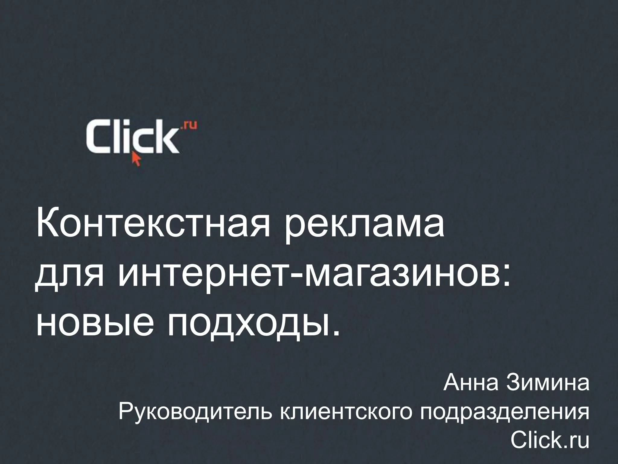 Документ представляет новые подходы к контекстной рекламе для интернет-магазинов, уделяя внимание ключевым словам, геотаргетингу и целевым страницам. Описаны методы повышения эффективности рекламы через анализ показателей ROI и автогенерацию объявлений, а также подчеркивается важность тщательной настройки рекламных кампаний. Предложены решения для снижения стоимости клика и улучшения CTR, включая использование копирайтеров и автоматизированных систем.