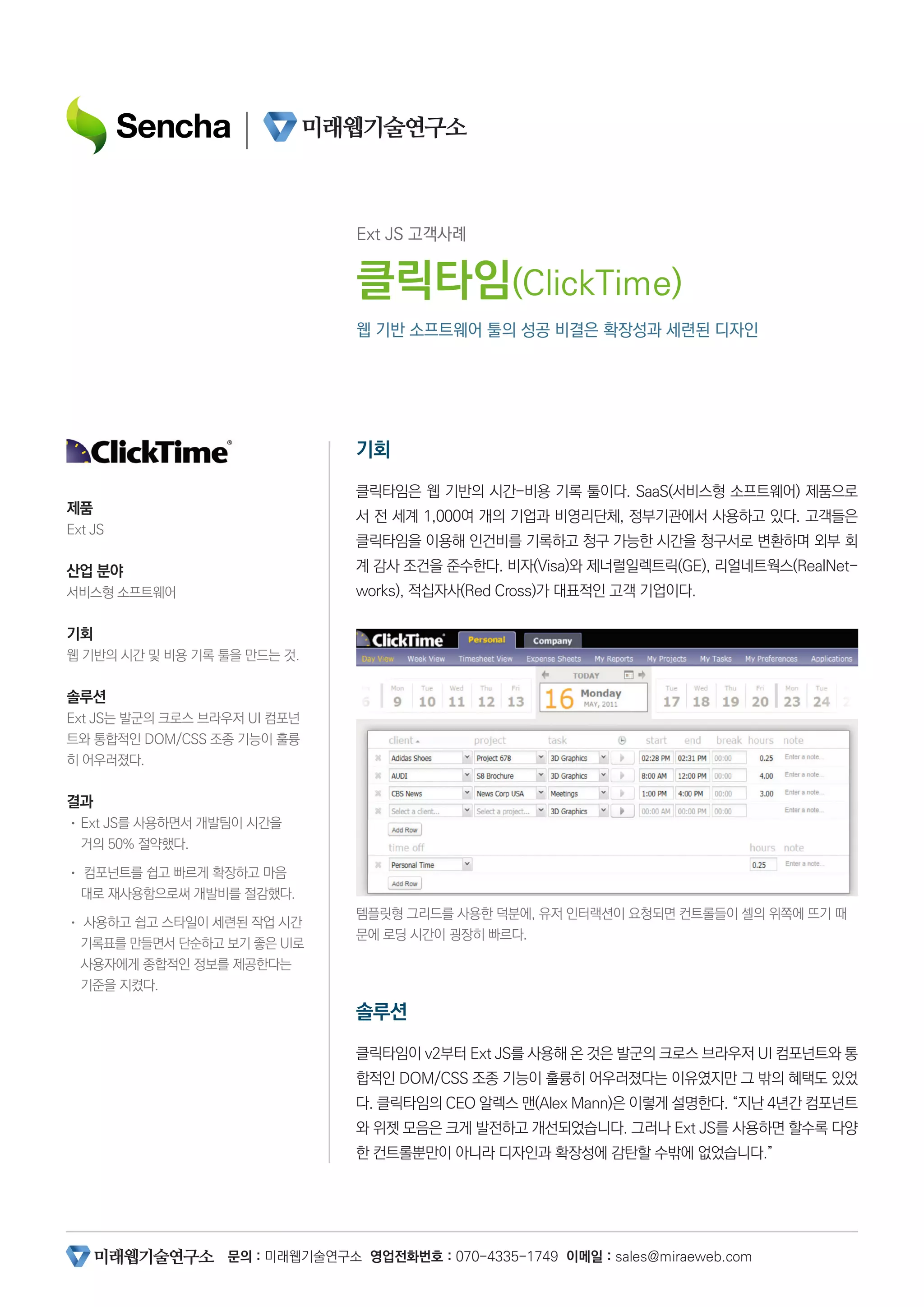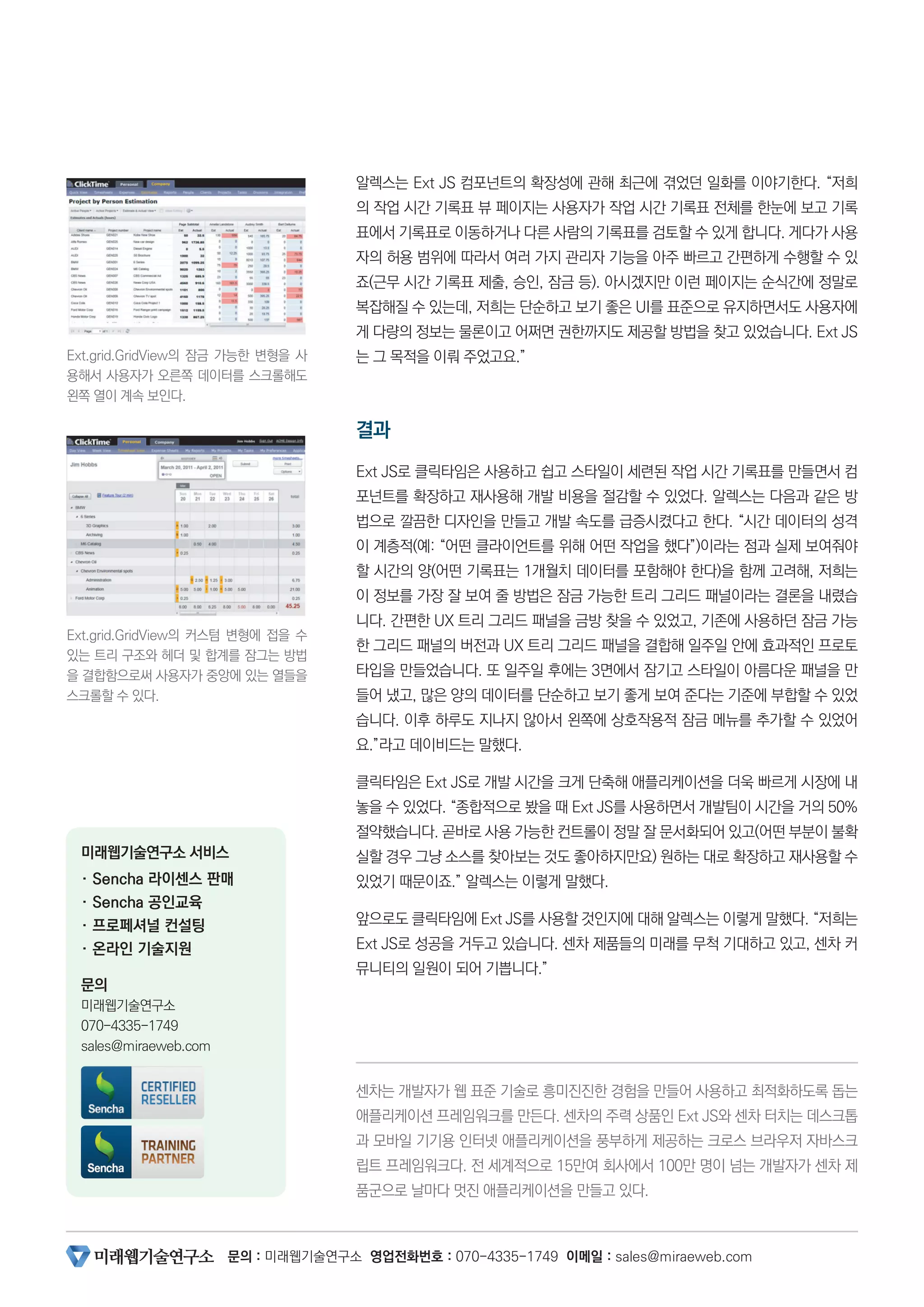 클릭타임은 Ext JS로 개발 시간을 크게 단축해 애플리케이션을 더욱 빠르게 시장에 내