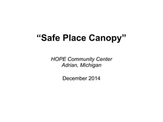 1) A fabric canopy installation created with adults with cognitive impairments at a community center to provide a safe space.