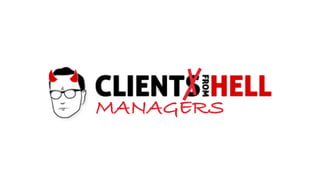 This document discusses best practices for client managers based on the experiences of several professionals. It outlines four main rules: 1) Set expectations early and often to avoid misunderstandings; 2) Communicate frequently with clients to address concerns before they become problems; 3) Pick up the phone to have more emphatic and honest conversations; 4) Do what you say you will do and communicate your actions clearly to build trust. Following these guidelines can help client managers avoid providing a bad experience and becoming a "client manager from hell."