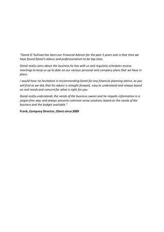 - Donal O'Sullivan has provided financial advice and services to many clients for 15-20 years, gaining their trust and loyalty.