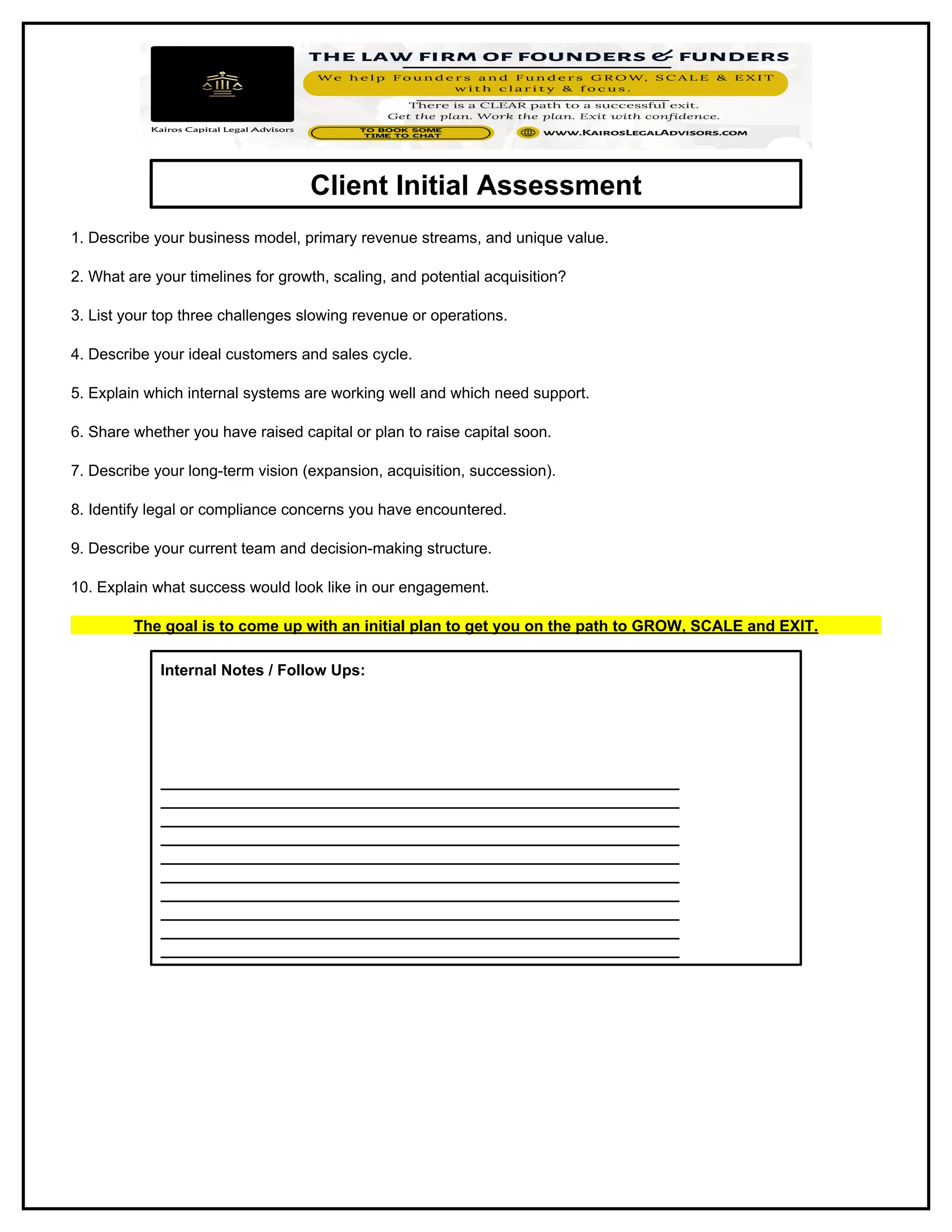 The goal is to come up with an initial plan to get you on the path to GROW, SCALE and EXIT.