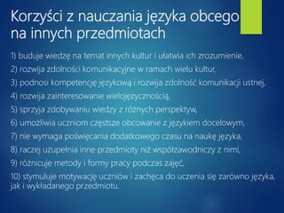 materiału zarówno z danego przedmiotu jak i z języka obcego w