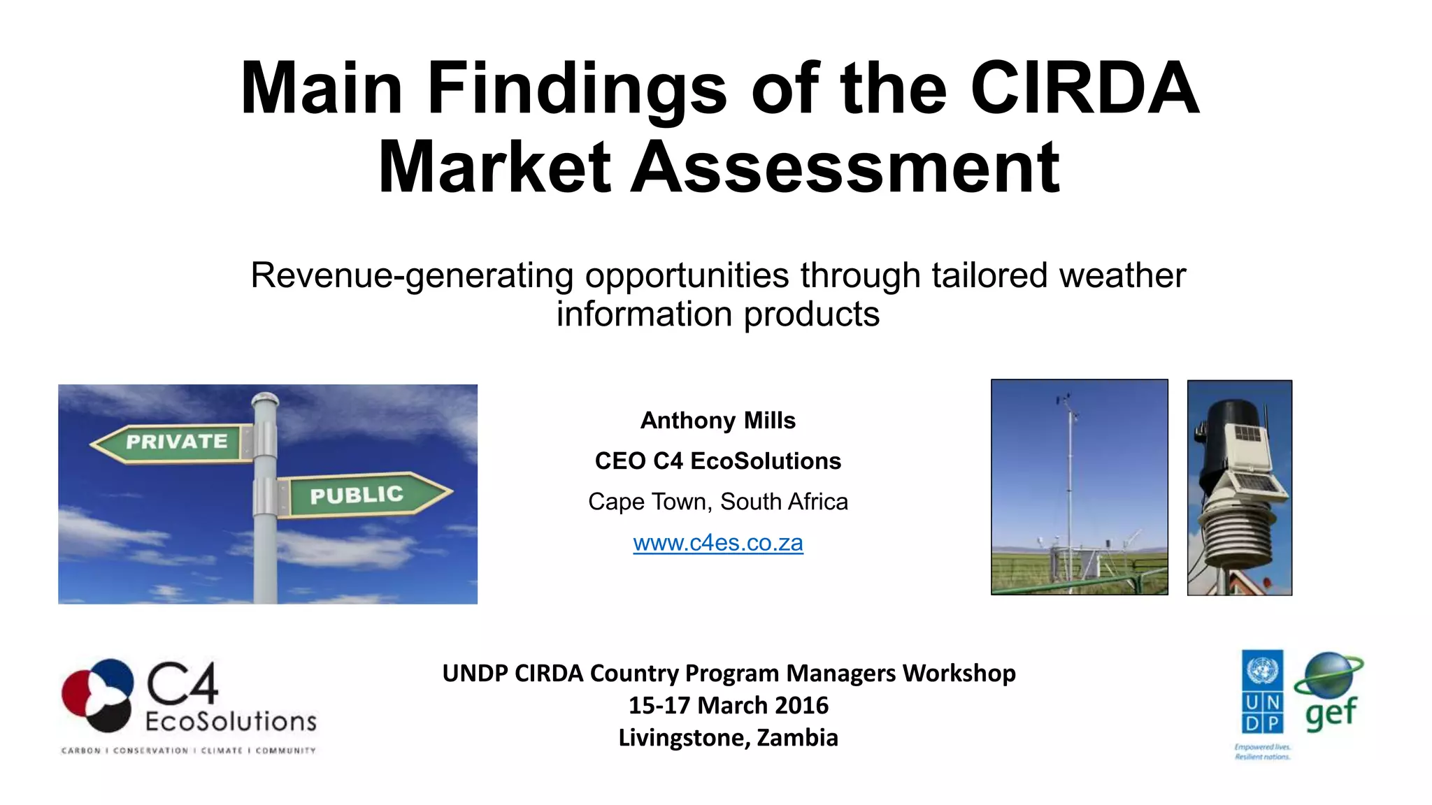 The CIRDA market assessment identifies opportunities for developing tailored weather and climate products across 11 countries, emphasizing the need for national meteorological and hydrological services (NHMS) to engage with private sector weather companies. Key findings suggest NHMS should prioritize collaboration over competition, improve data availability, and adapt to market demands. Recommendations include enhancing regulatory environments, fostering partnerships, and developing innovative weather services to boost commercial viability.