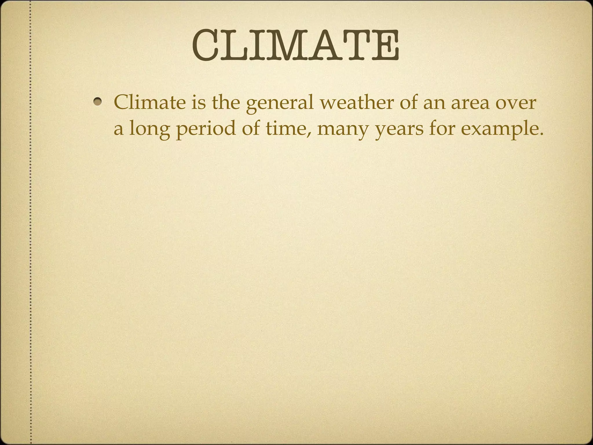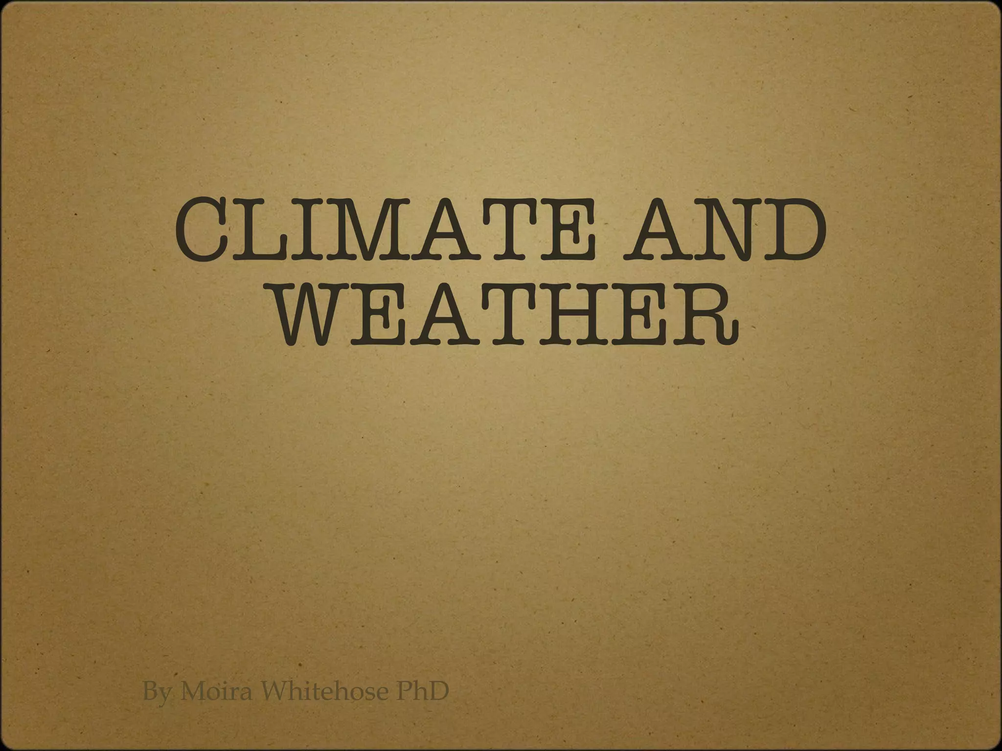 The document discusses the concepts of climate and weather, explaining that climate is the long-term average of weather in a region, while weather refers to short-term atmospheric conditions. It describes three main climate zones: polar, temperate, and tropical, highlighting their characteristics and typical weather patterns. Additionally, it touches on how the tilt of the Earth influences seasons and temperature variations in different regions.