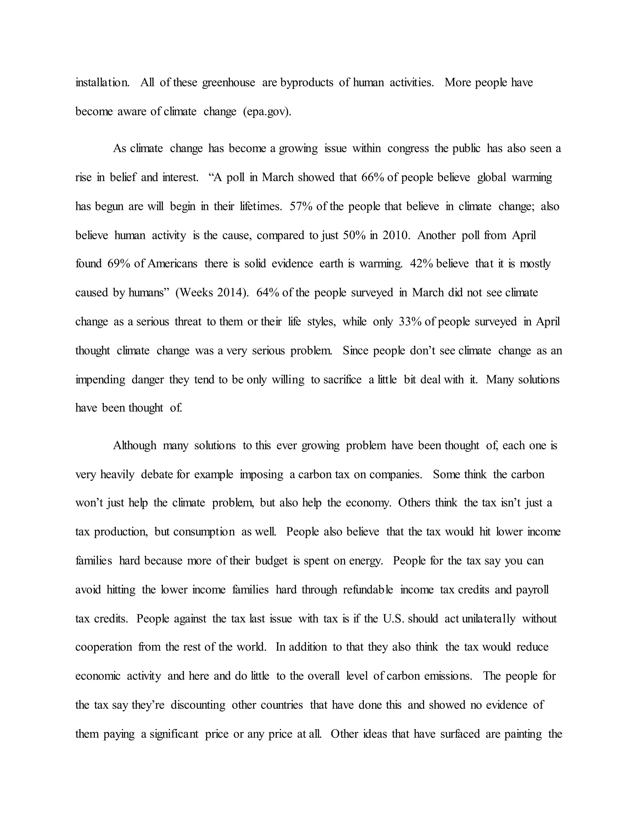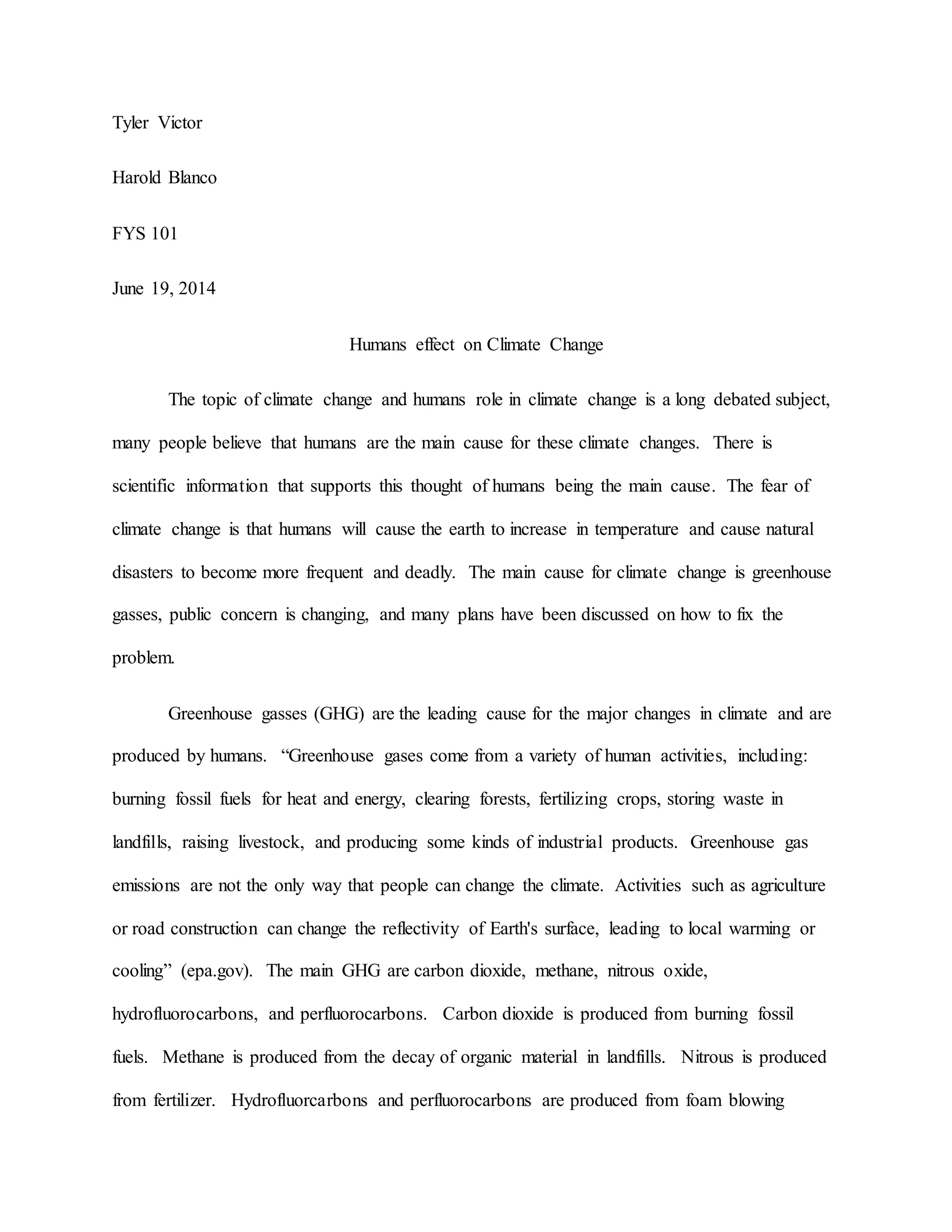 Humans are the main cause of climate change according to scientific evidence. Greenhouse gases like carbon dioxide and methane, which are byproducts of human activities such as burning fossil fuels and agriculture, are the leading cause of changes in the climate. While more people now believe that climate change is occurring and human-caused, many do not see it as an immediate threat. Proposed solutions such as a carbon tax are controversial, as they may help reduce emissions but also negatively impact economies and lower-income families. Overall the document argues that humans play a significant role in driving climate change.