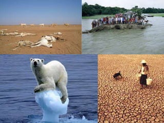 2) It discusses the definitions of climate and climate change, causes of climate change including both natural factors and human activities, and effects of climate change on various systems.