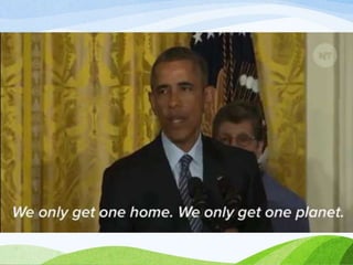 The document discusses climate change, defining it as significant long-term changes in climate measures such as temperature and precipitation. It provides historical data showing an increase in global temperatures, extreme weather events, and rising sea levels, emphasizing the impacts on ecosystems and human communities. Additionally, it highlights the Kyoto Protocol's aim to reduce greenhouse gas emissions and presents statistics on carbon emissions from various countries.