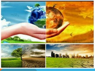 Climate change refers to the long term rise in average global temperatures due to human activity like burning fossil fuels. This releases greenhouse gases like carbon dioxide into the atmosphere, trapping heat and changing the climate in ways that have negative effects. Some consequences of climate change include more extreme weather, economic damages from these events, flooding, landslides and wildfires which can also cause deaths. While natural factors like solar and volcanic activity can influence climate over long periods, human activity is the dominant cause of recent climate change according to scientific studies.