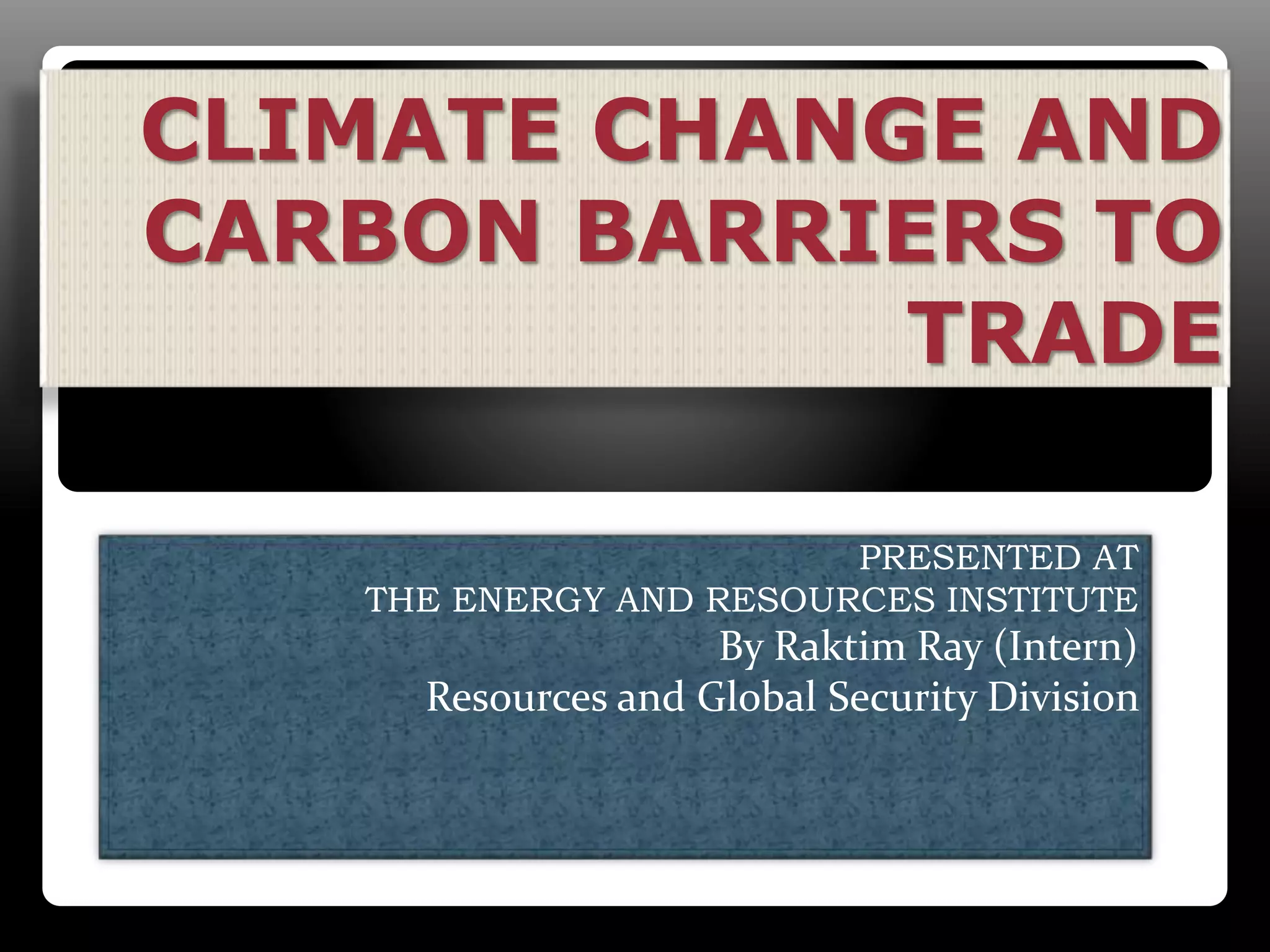 This document discusses potential trade barriers related to climate change. It analyzes the Waxman-Markey Bill, which proposes border tax measures for imports into the US from countries that do not regulate greenhouse gas emissions. The document examines India's trade with the US and identifies sectors that would be most affected by such border taxes, such as precious metals, apparel, machinery, and organic chemicals. It outlines methods used to estimate sectors' greenhouse gas emission levels and potential impacts on India's export revenues. While the bill may not pass, the analysis identifies industries vulnerable to future climate-related trade barriers.