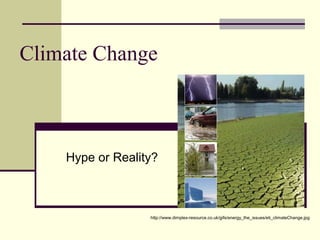 1) The document discusses evidence of past climate change from various proxy records like tree rings, ice cores, fossils, and historical paintings. It also examines factors that can influence the climate like solar activity, volcanic eruptions, greenhouse gases, and human activities.