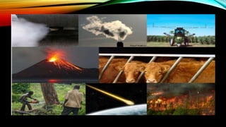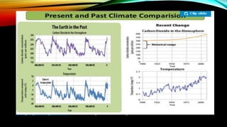 Climate change refers to changes in average weather patterns such as temperature, wind, and precipitation over extended periods of time. Climate change has occurred naturally in the past due to factors like changes in the Earth's orbit and sun's energy output, as well as volcanic eruptions. However, the current climate change is also influenced by human activities that have increased greenhouse gas emissions such as the burning of fossil fuels, deforestation, and industrial processes. If unmitigated, climate change will have widespread effects on systems like weather, ecosystems, agriculture, and sea level rise.
