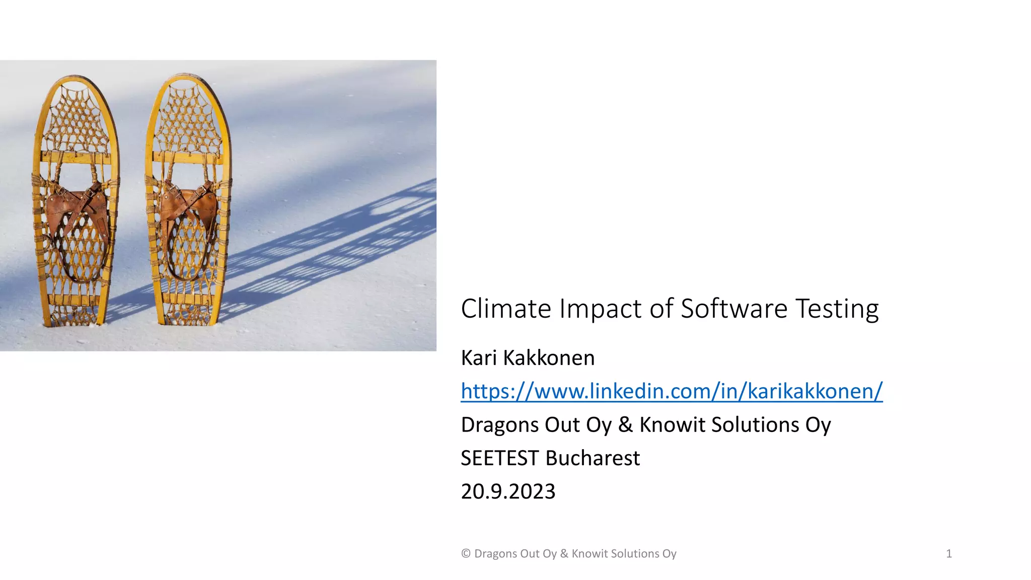 Kari Kakkonen presented on the climate impact of software testing and how testing practices can help minimize carbon footprint. Some key points: