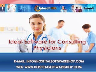 Infosoft® hospital information system is a customizable and user-friendly software designed for consulting physicians, offering comprehensive management of hospital and clinic services. It features modules for patient registration, record maintenance, and reporting, alongside an electronic prescription pad for seamless prescription management. Founded in 1999, Infosoft provides innovative solutions across various domains including healthcare and real estate.