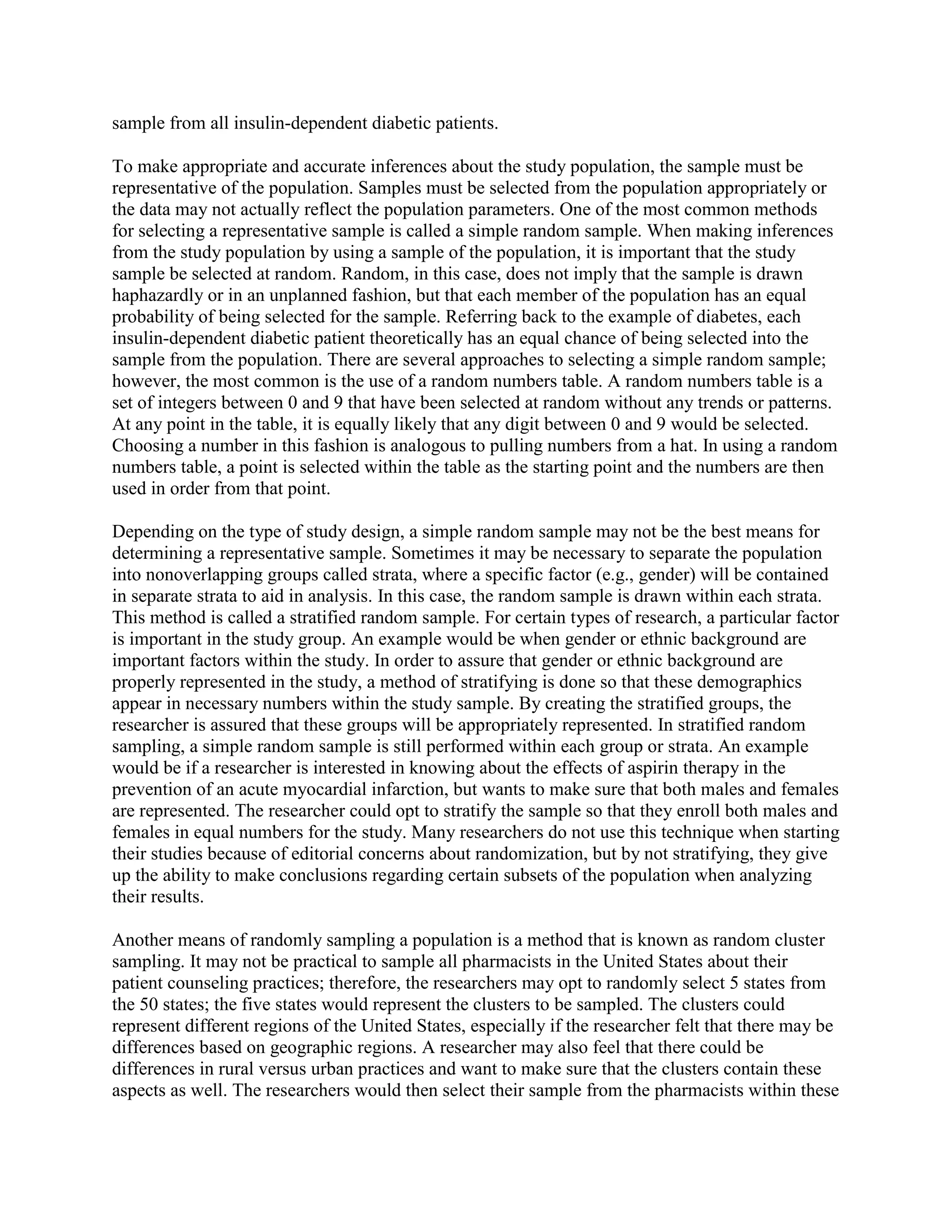 2) Common study designs and sampling methods used in research like simple random sampling, stratified random sampling, and cluster sampling to obtain representative study samples.