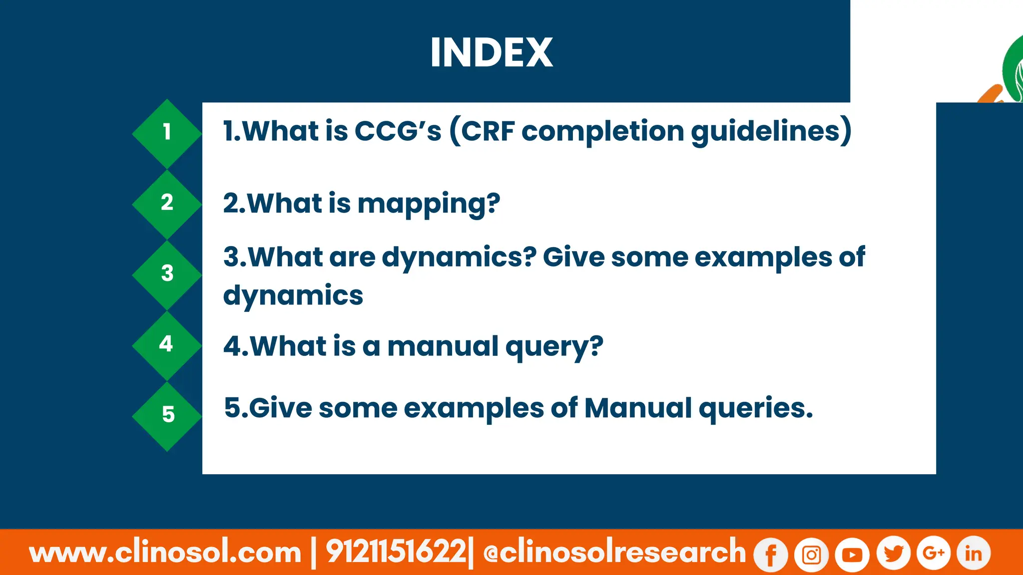 The document outlines key interview preparation questions related to clinical data management, focusing on CRF completion guidelines (CCGs), data mapping, dynamics, and manual queries. CCGs assist investigators in accurately completing CRFs, while data mapping involves matching database fields to facilitate data management. Manual queries, raised by data managers or statisticians based on data reviews, help address discrepancies in data, such as identifying duplicate records.