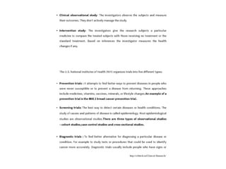 studies involving people. They are divided into different stages, called phases. The earliest phase trials might focus at whether a drug is safe or the side effects it causes. A later phase trial aims to test and compare whether a new treatment is better than existing ones.also checkwhy clinical trials are important in clinical research. Types of Classifi