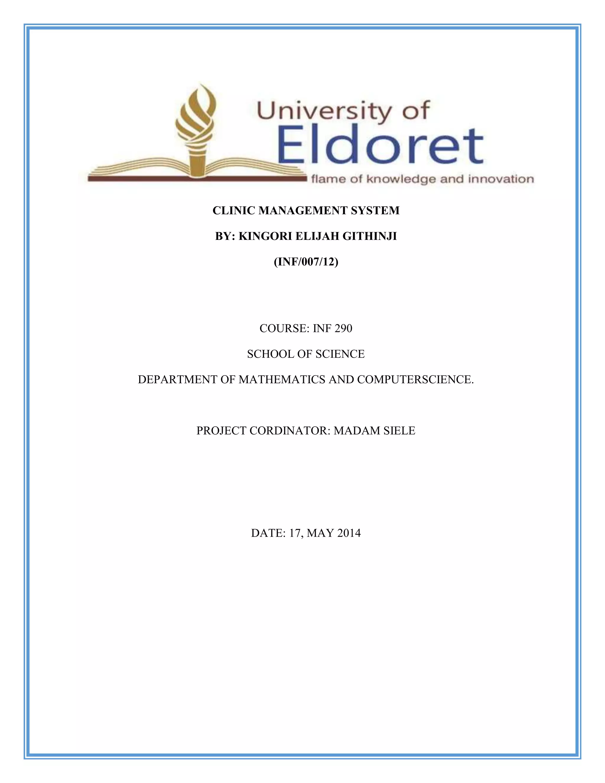 This document presents a clinical management system project for a university clinic. It includes an introduction describing the need for such a system. It then discusses objectives like enabling better supervision and reducing costs. The input and output data of the system are also described. The document reviews literature on challenges with current manual systems and justifies how a computerized system can help. It covers the analysis and design of the system including feasibility studies and the database to be used. In conclusion, it presents the clinical management system as a way to improve efficiency and management of patient records in university clinics.