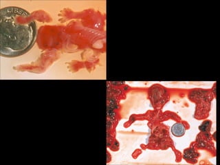 The document is a letter written from the perspective of an unborn baby to its mother at various stages of development in the womb. It expresses happiness at being conceived and growing, but becomes distressed as it senses the mother's sadness. It pleads for help as it undergoes an abortion procedure, experiencing pain as its limbs are removed. The letter concludes by asking the mother not to feel guilt 17 years later and encourages participation in anti-abortion campaigns.