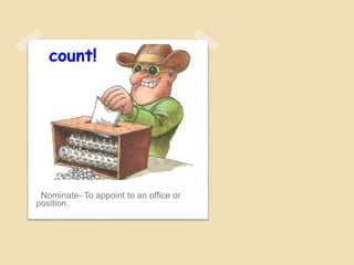 This document provides definitions for vocabulary words related to names and naming conventions. It lists 14 different words - including nominate, nom de plume, namesake, misnomer, pseudonym, synonyms, surnames, denomination, cognomen, antonyms, anonymous, and renowned. The words are presented without context or examples for their meanings. The document ends by stating it has reached the end.