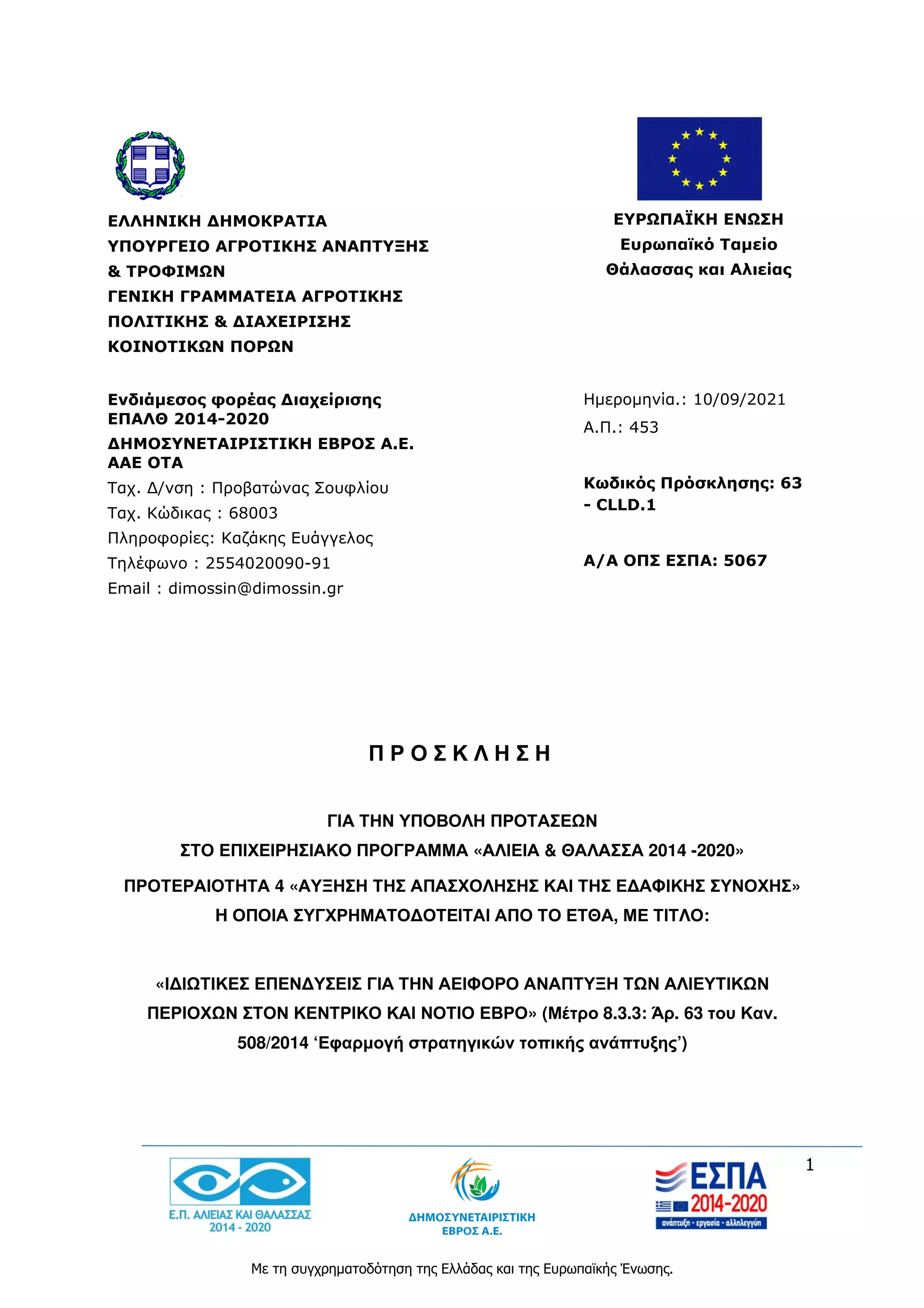 ΠΕΡΙΟΧΩΝ ΣΤΟΝ ΚΕΝΤΡΙΚΟ ΚΑΙ ΝΟΤΙΟ ΕΒΡΟ» (Μέτρο 8.3.3: Άρ. 63 του Καν.