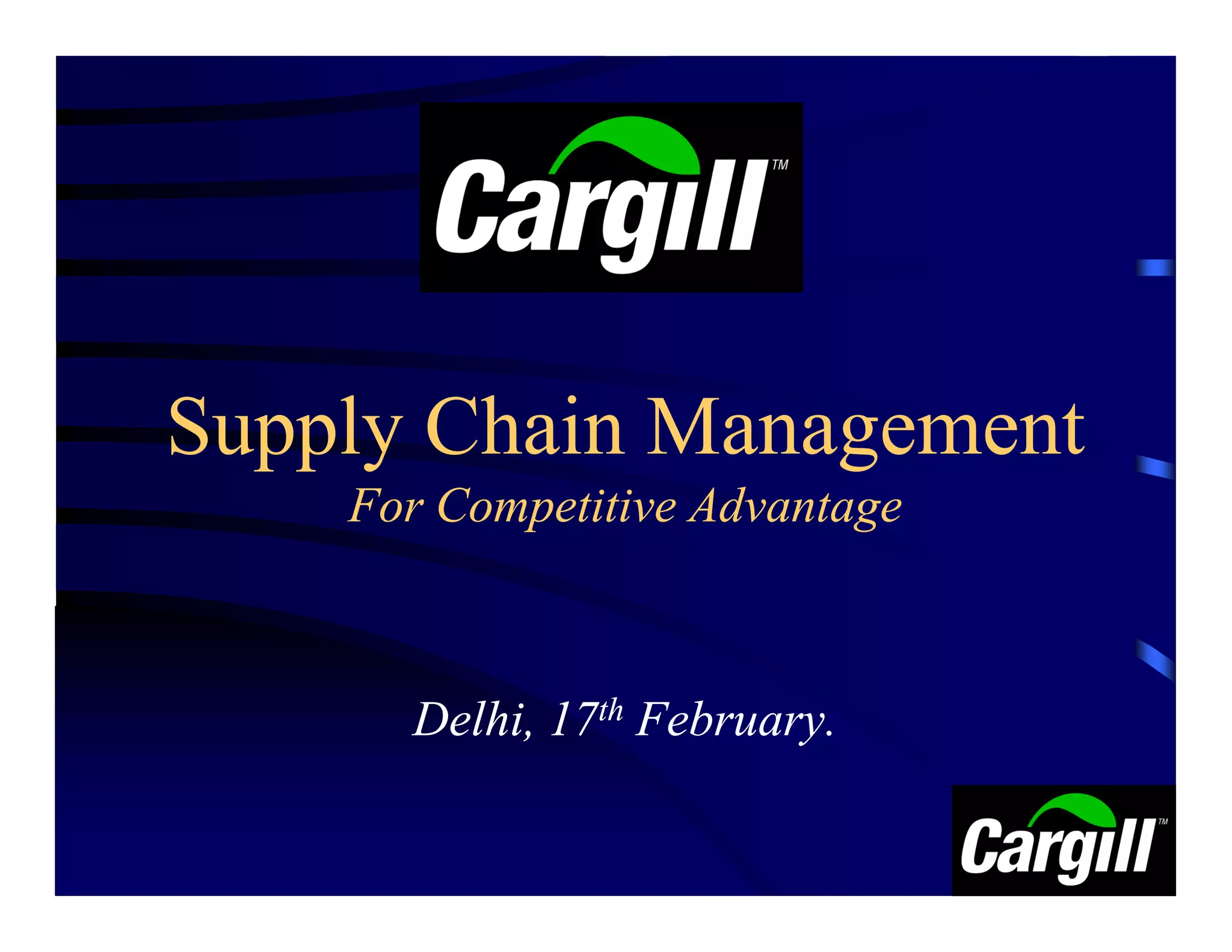 The document discusses supply chain management and its importance for competitive advantage. It outlines the key components of an organization's supply chain including material providers, plants, distributors, retailers, and consumers. Effective supply chain management can lower costs and increase productivity, creating advantages over competitors. The document also discusses how logistics and supply chain efficiencies can provide long-term competitive benefits through cost optimization without affecting consumer value. Overall, the document emphasizes that world-class companies use supply chain management to lower total costs by 3-6% of revenue compared to average companies.
