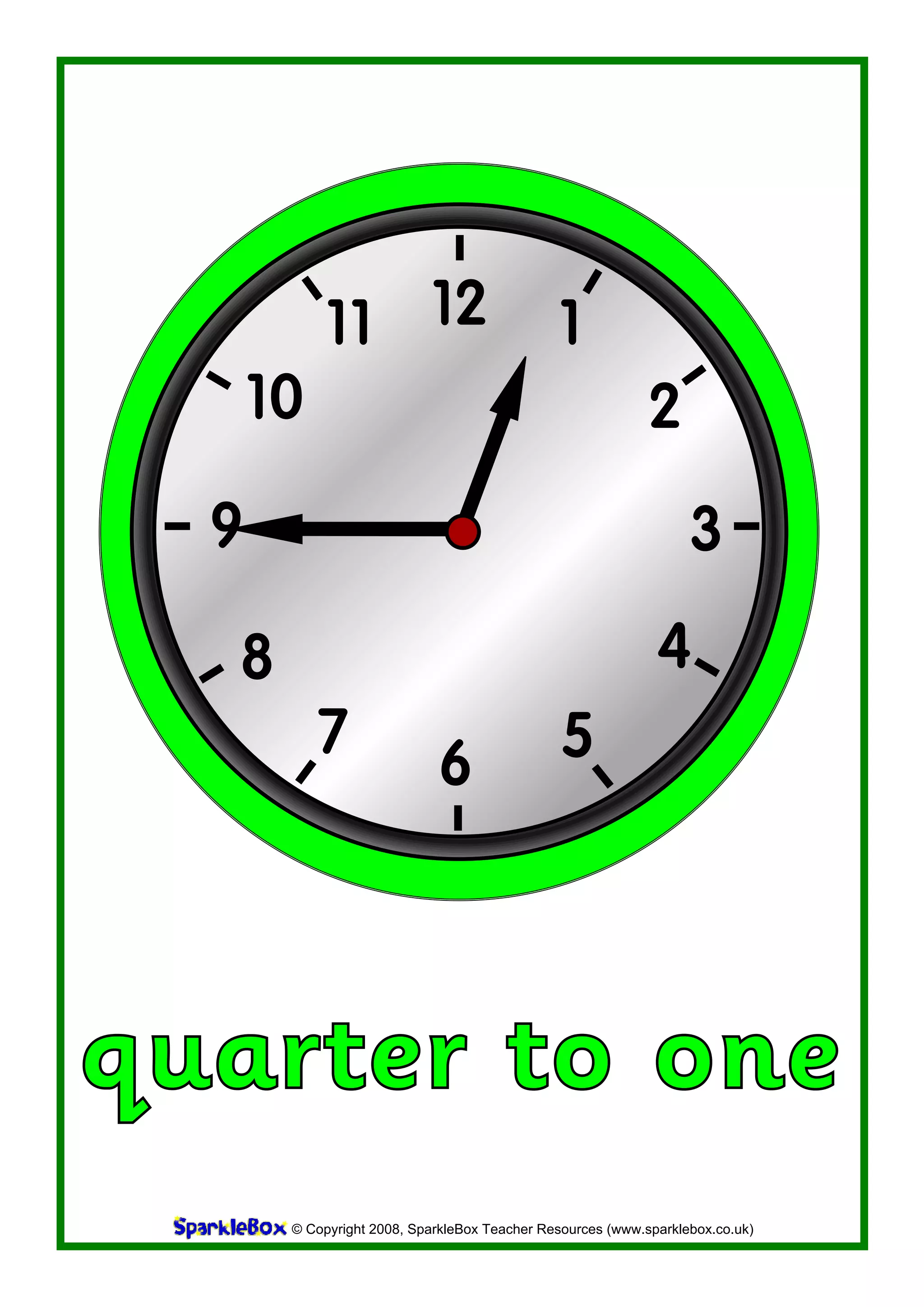 The document contains 12 repetitions of a template with numbers in various positions and copyright text at the bottom. Each template represents a quarter of an hour and is sequentially numbered from one to twelve.