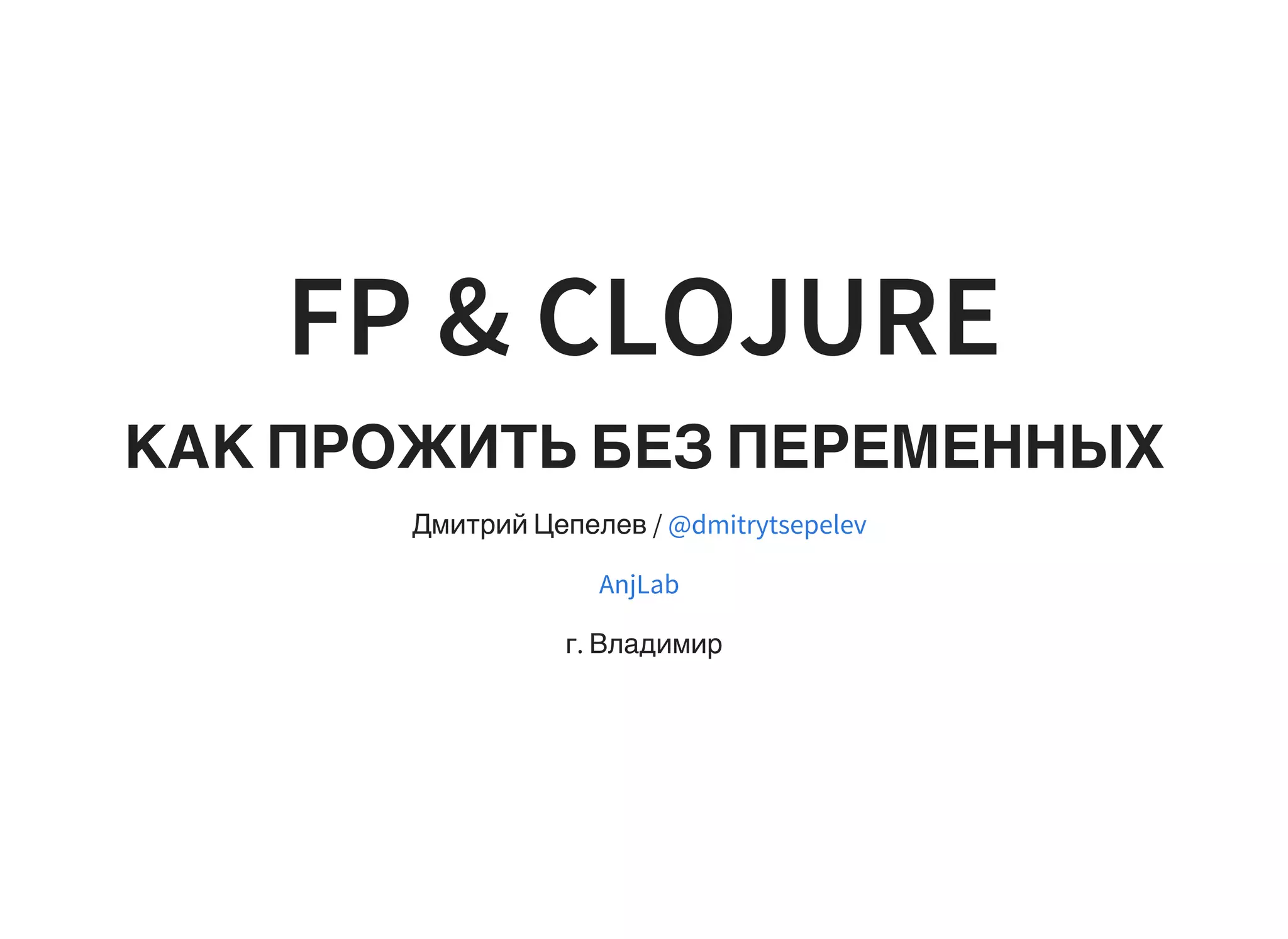 Документ обсуждает функциональное программирование (ФП) и его принципы, акцентируя внимание на неизменяемости данных и отсутствия переменных. Он рассматривает примеры функций высших порядков, каррирования, кэширования и композиции функций в языке Clojure. Основные преимущества ФП включают упрощенное тестирование, отладку и поддержку многопоточности.