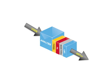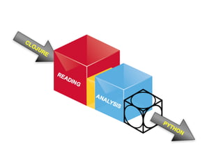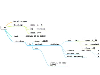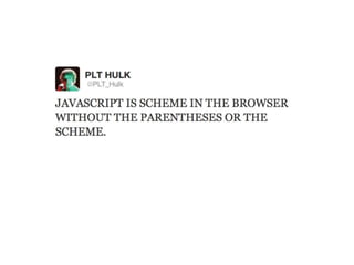 The document explores the anatomy of ClojureScript and its relationship with JavaScript, emphasizing its semantics, syntax, functional inheritance patterns, and issues like globals and mutations. It discusses different inheritance models and strategies for handling memory, object modules, and performance optimizations such as dead-code elimination and minification. Overall, it illustrates various programming paradigms and their implications for JavaScript development, including potential pain points and solutions.