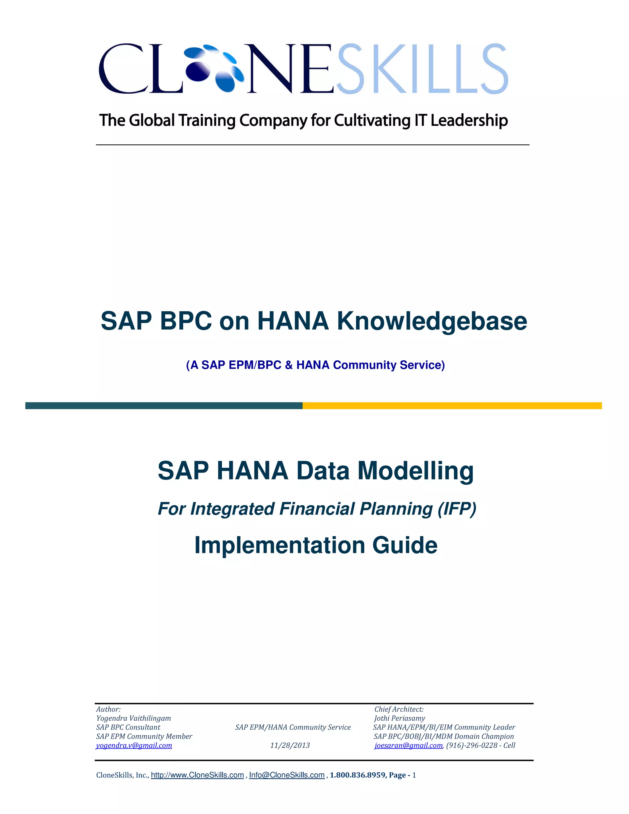 This document serves as an implementation guide for SAP HANA data modeling specifically for integrated financial planning, detailing the necessary building blocks and steps required to create robust SAP HANA data models. It emphasizes the importance of leveraging SAP HANA's in-memory computing capabilities and provides practical instructions on creating various data models and tables. The guide is aimed at practitioners with a basic knowledge of SAP HANA and database concepts, facilitating a comprehensive understanding of data model implementation.