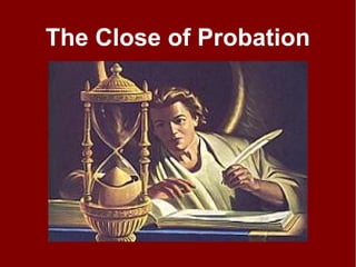 3. Several quotes are provided about the close of probation being the time of testing when the mark of the beast is enforced and received, and God's people receive the seal.