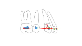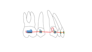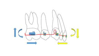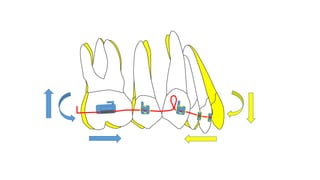 This document discusses orthodontic treatment using closing loops made of different materials. Stainless steel closing loops produce higher horizontal forces and load/deflection ratios compared to beta titanium loops. A moment/force ratio of 9.3 is optimal for retracting anterior teeth in a 0.022-inch slot system. Placement of the closing loop can affect whether it encourages root tipping through moment forces or translation. Alternatives like bending the archwire or using mini screws or headgear may be needed to prevent unwanted side effects like a deep bite.