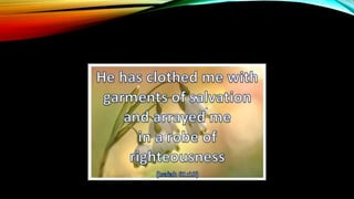 The document discusses the concept of being 'clothed with Christ' and the transformation involved in removing old sinful garments to embrace a new self. It provides scriptural references and prompts for personal reflection on how to live as new beings in Christ. The message emphasizes the importance of humility, compassion, and righteousness in this spiritual journey.