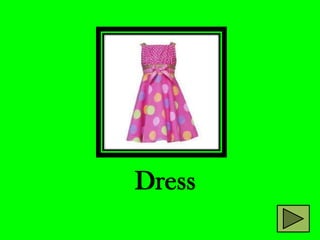 The document provides a list of items of clothing including dress, tie, shirt, skirt, trousers, shoes, socks, and shorts. It then asks questions about which items of clothing different people wear and asks the reader to identify items of clothing from partial words and rearrange letters to form full words of clothing items.