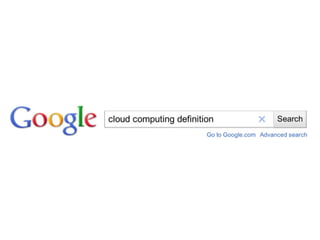 The document discusses cloud computing and defines it as a model that enables convenient, on-demand access to a shared pool of configurable computing resources like networks, servers, storage, applications and services. It describes the essential characteristics of cloud computing including on-demand self-service, broad network access, resource pooling, rapid elasticity and measured service. It also outlines the three main service models - SaaS, PaaS and IaaS - and the four deployment models - private, public, community and hybrid cloud. The document provides examples and diagrams to illustrate cloud taxonomy and different cloud services.