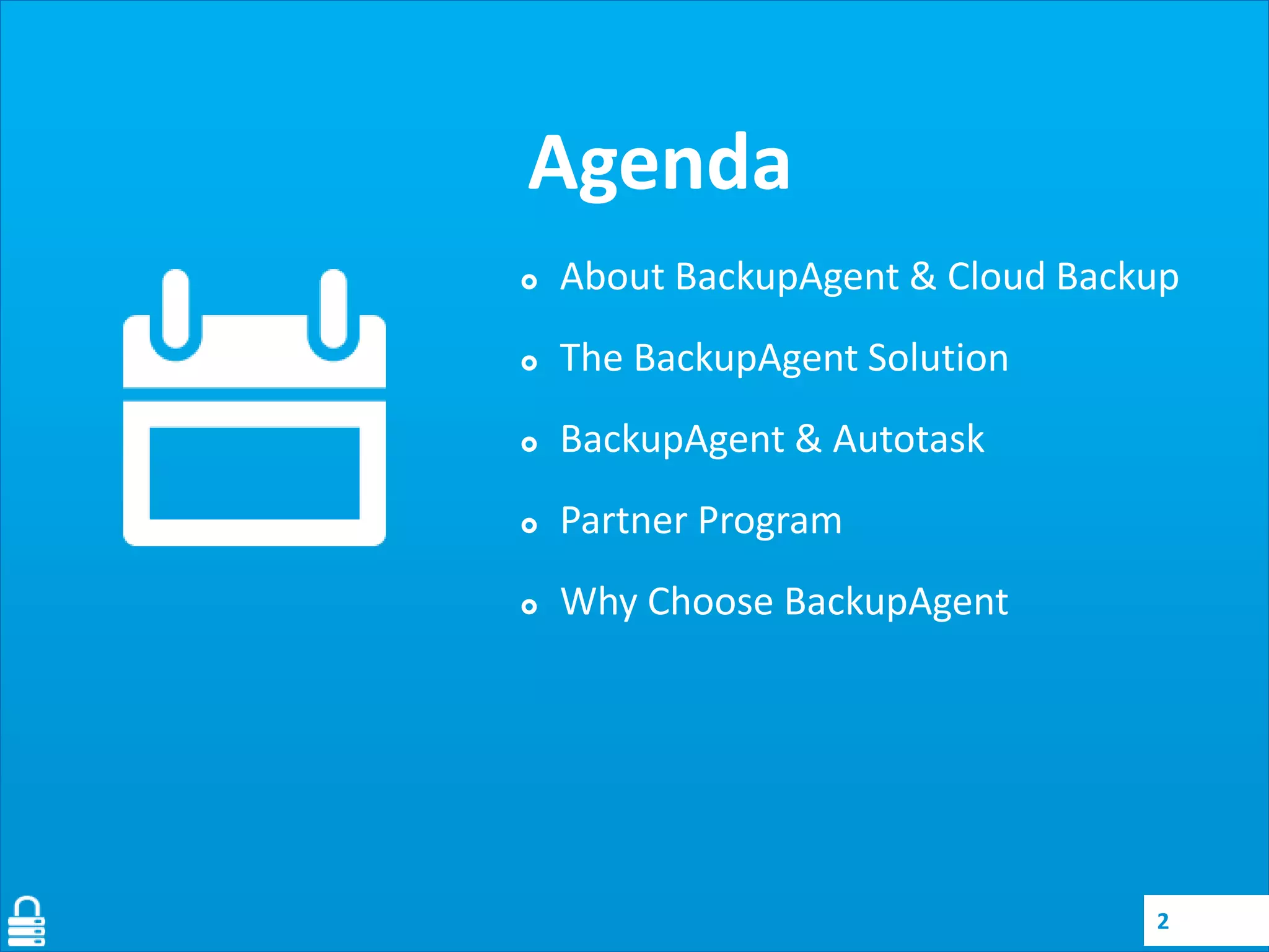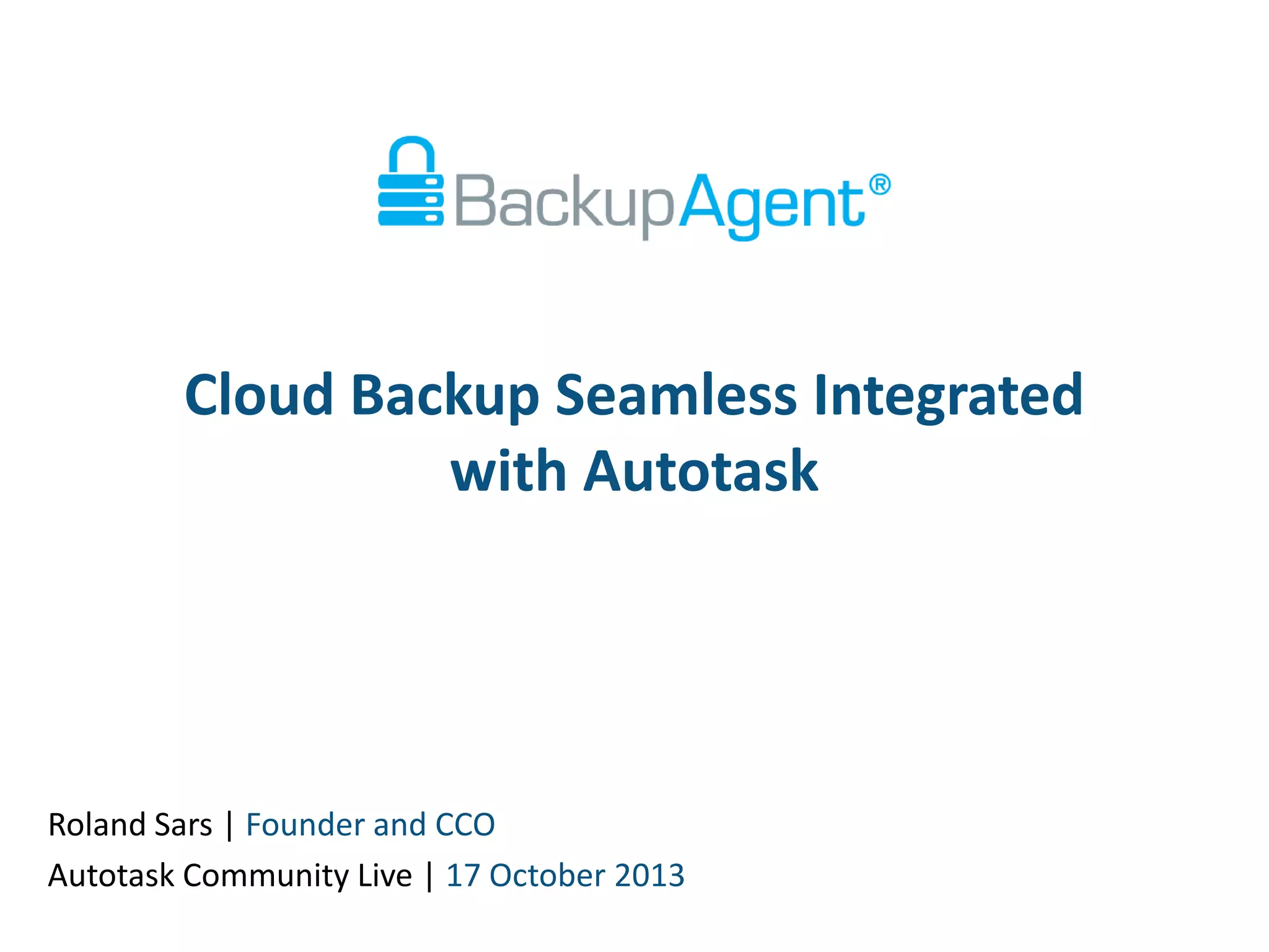 The document presents BackupAgent, a cloud backup solution founded in 2005, highlighting its benefits, features, and integration with Autotask for managed service providers (MSPs). It emphasizes the service's flexibility, fast performance, and strong security measures, including military-grade encryption. BackupAgent also offers a partner program that includes support, training, and marketing assistance aimed at helping service providers grow their business.