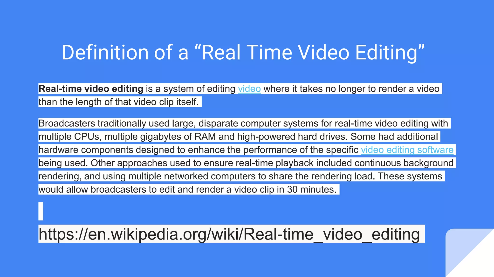 The document discusses advancements in cloud-based video production and real-time editing technologies, highlighting tools like NewTek NDI, Sienna, Goeasylive, and Teradek. It explores the shift towards cloud solutions for live streaming and video management, outlining pricing models and the potential for significant cost savings compared to traditional hardware. The author anticipates that cloud-based video production will transform the industry over the next 2-3 years, much like the shift towards SaaS in video conferencing.