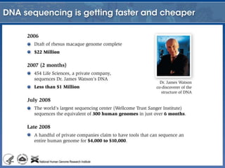 This document provides an overview of cloud bioinformatics and the challenges of analyzing large datasets from next-generation sequencing (NGS). It discusses how bioinformatics uses computational methods to study genes, proteins, and genomes. The advent of NGS has led to huge datasets that require high-performance computing. Cloud computing provides access to pooled computing resources in a cost-effective manner and helps address the bioinformatics challenge of assembling and analyzing NGS data. The document also outlines common bioinformatics software and resources available through WestGrid and Galaxy that can be used for sequence assembly, annotation, and other applications.