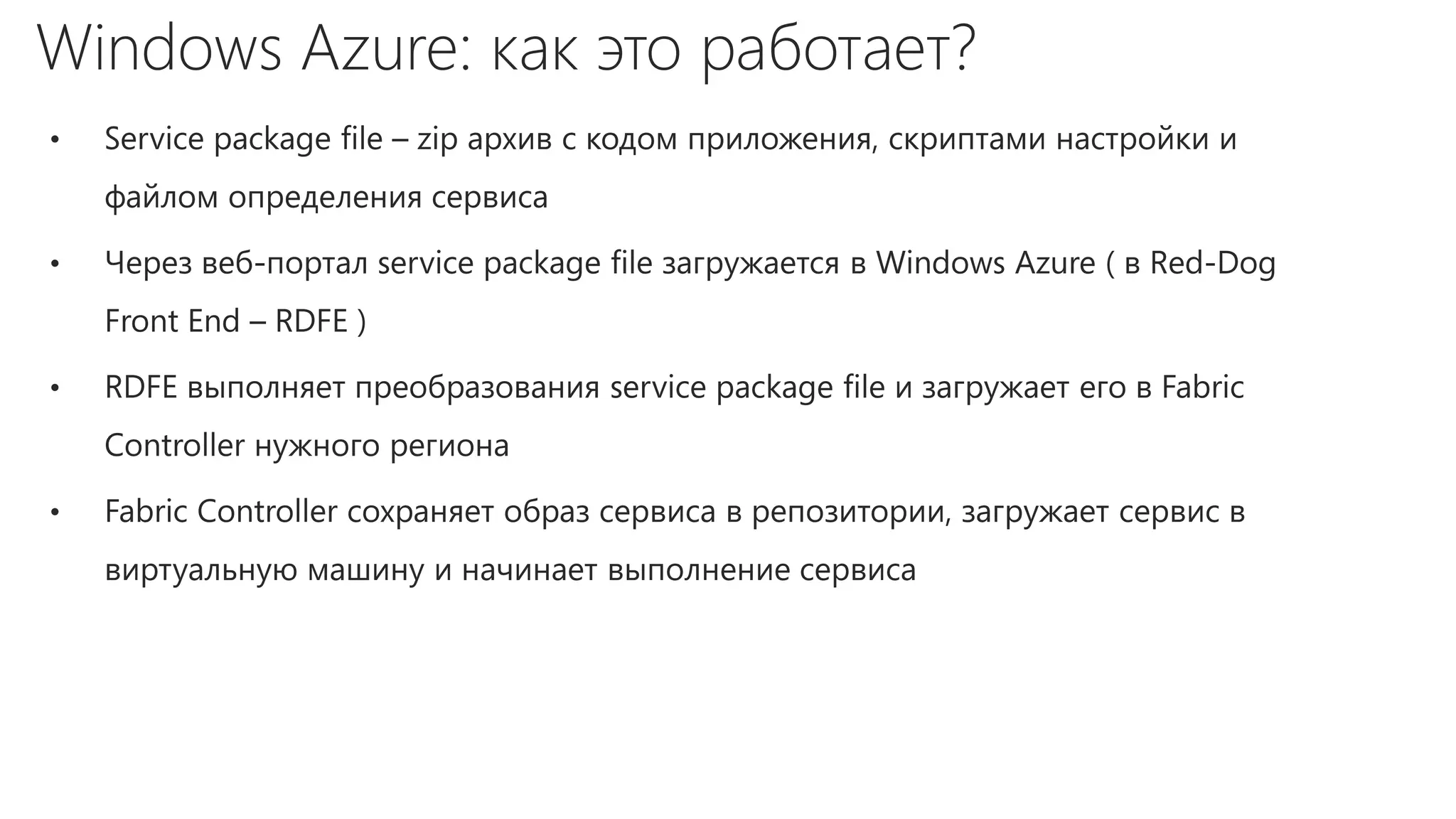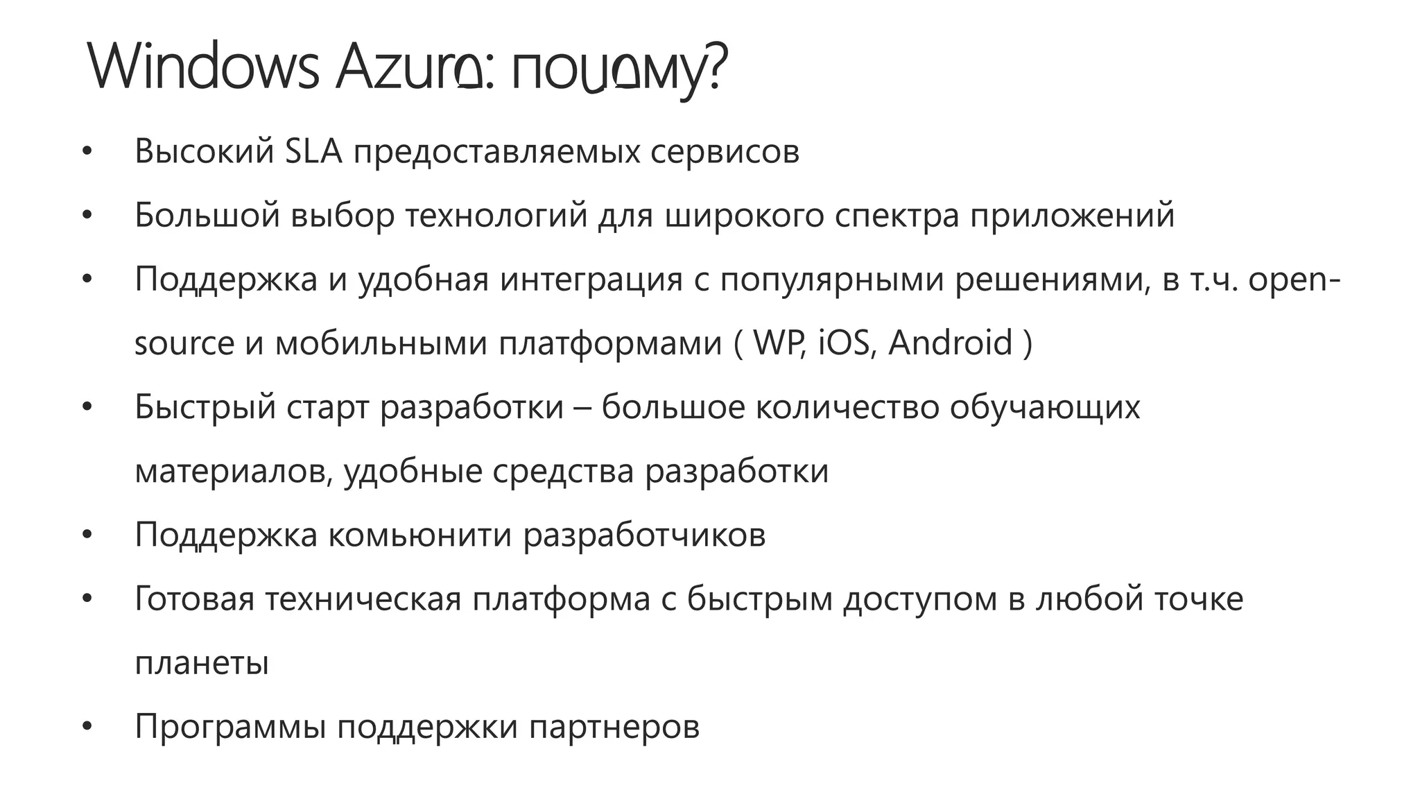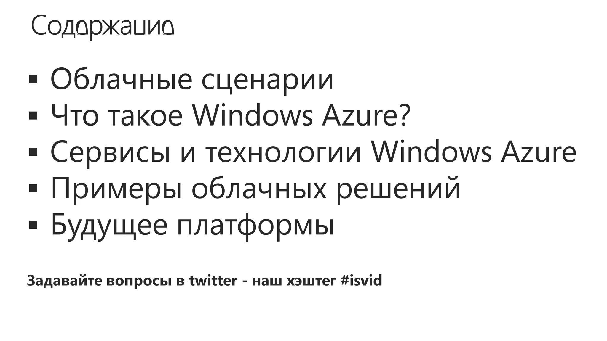 Документ представляет собой описание платформы Windows Azure и ее облачных технологий, включая различные сервисы и решения для бизнеса. Он охватывает функциональность и применение облачного хранилища, управления ресурсами и создания приложений. В тексте также указаны ресурсы и каналы для получения дополнительной информации и поддержки от Microsoft.