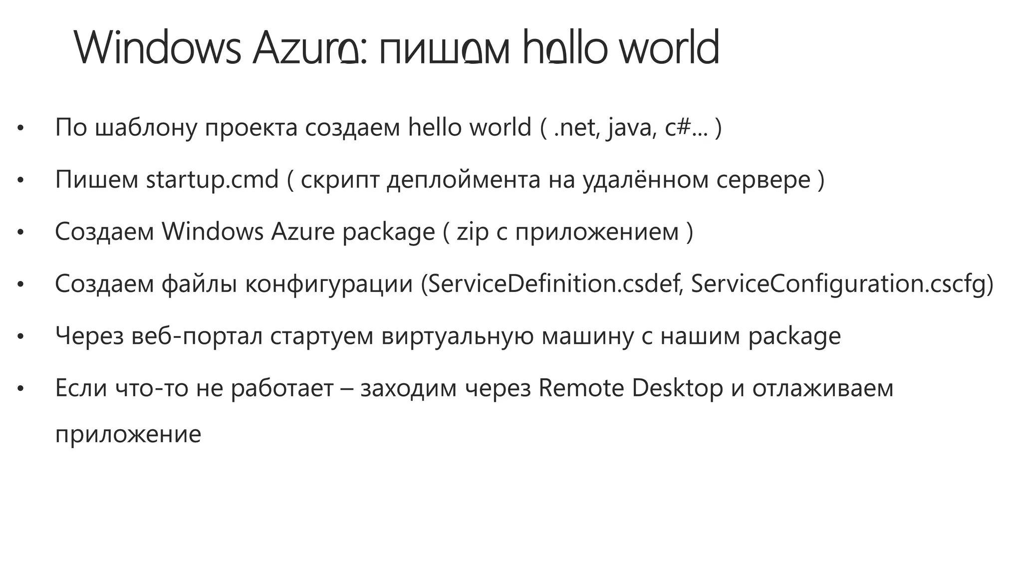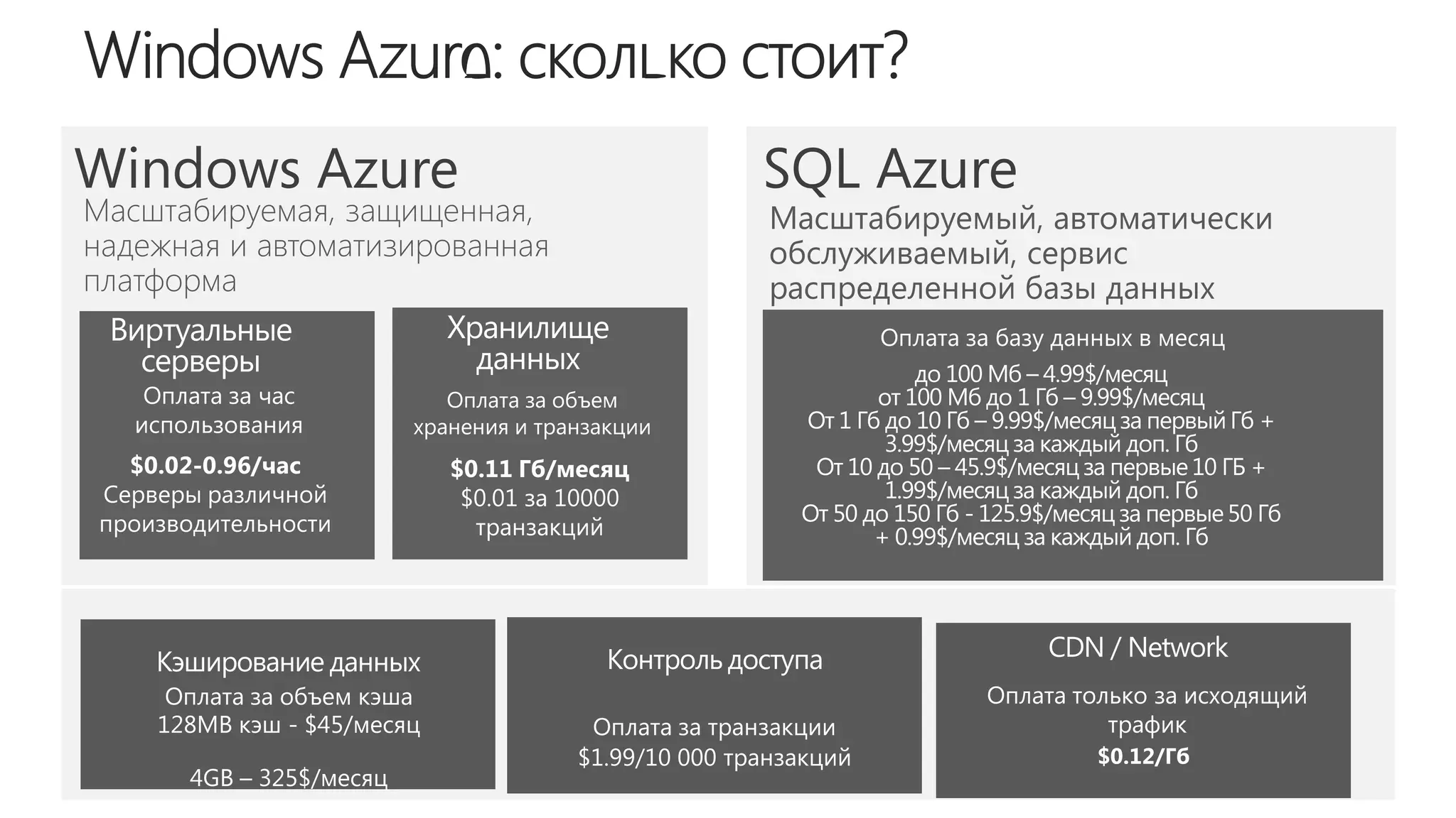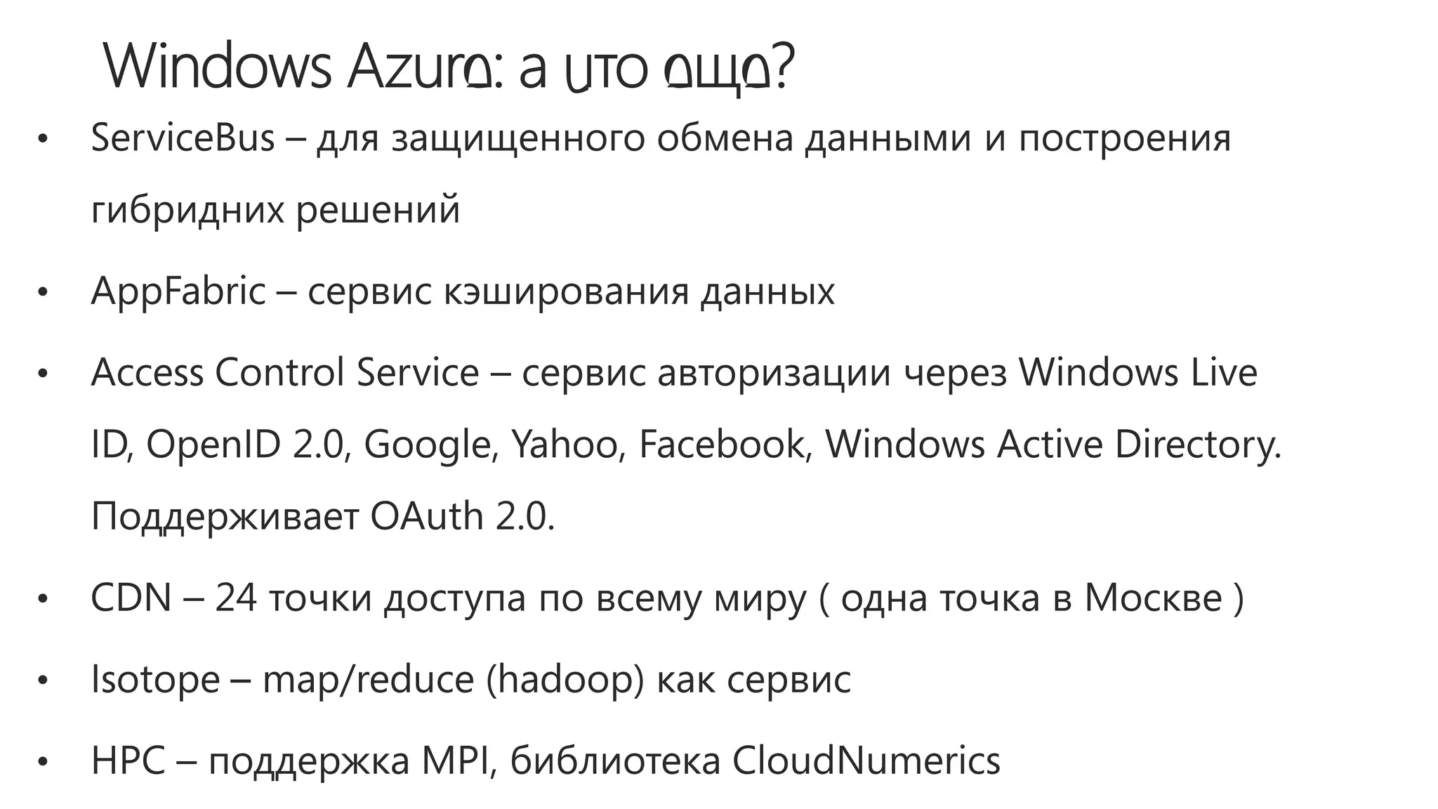 Документ представляет собой описание платформы Windows Azure и ее облачных технологий, включая различные сервисы и решения для бизнеса. Он охватывает функциональность и применение облачного хранилища, управления ресурсами и создания приложений. В тексте также указаны ресурсы и каналы для получения дополнительной информации и поддержки от Microsoft.