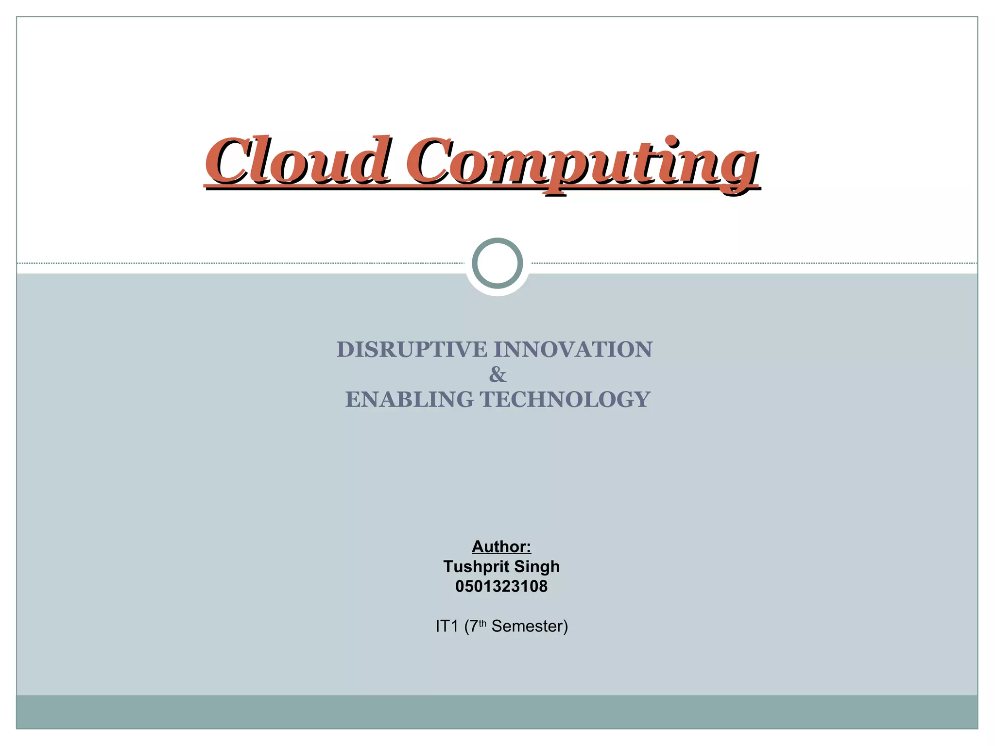The document discusses disruptive innovation and enabling technology of cloud computing. It defines cloud computing and describes its key benefits like ease of use, scalability, reliability and lower costs compared to traditional hosting. It also discusses different types of cloud like SaaS, PaaS, IaaS and how cloud computing has led to a shift from traditional hosting models to cloud-based hosting due to technological advances and business needs.