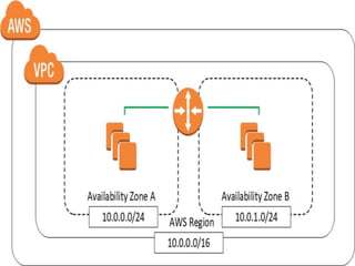 This document discusses cloud computing and Amazon Web Services (AWS). It begins with an introduction to cloud computing, describing it as accessing and delivering services over the internet, such as storage, computing, and software. It then covers the benefits of cloud computing, including scalability, monitoring, and reduced time to market. The document discusses various cloud services models including Infrastructure as a Service (IaaS), Platform as a Service (PaaS), and Software as a Service (SaaS). It also covers cloud deployment models such as public, private, hybrid and community clouds. The remainder focuses on AWS services and provides an overview of compute, storage, database, deployment and security services along with examples of using Lambda for serverless applications