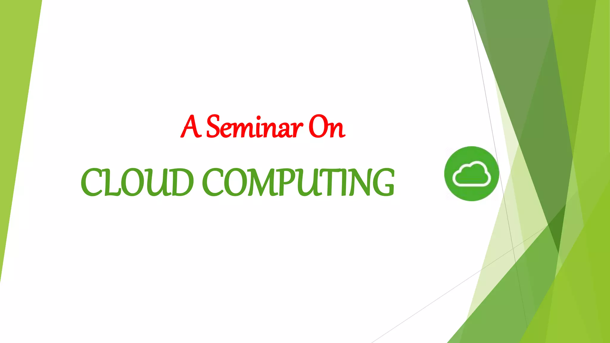 Cloud computing involves storing and accessing data and programs over the Internet instead of a local computer's hard drive. It has a front-end and back-end connected through a network, usually the Internet. The back-end consists of data centers containing distributed servers that act as a single system. There are three main types of cloud services: Infrastructure as a Service (IaaS) provides basic storage and networking; Platform as a Service (PaaS) provides development tools; and Software as a Service (SaaS) provides complete applications that users access through a web browser. Cloud computing offers advantages like lower costs, improved performance and collaboration capabilities, but also risks like dependence on constant network access and potential security issues.