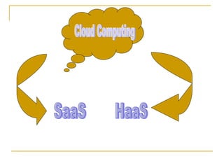The document provides an overview of cloud computing, defining it as a model for delivering IT resources as services with benefits like no hardware costs and subscription-based pricing. It discusses public, private, and hybrid clouds, including their architectures and examples like Amazon EC2 and Google Apps. The text highlights current implementations and benefits of cloud computing, emphasizing its future potential for scalable and flexible computing solutions.