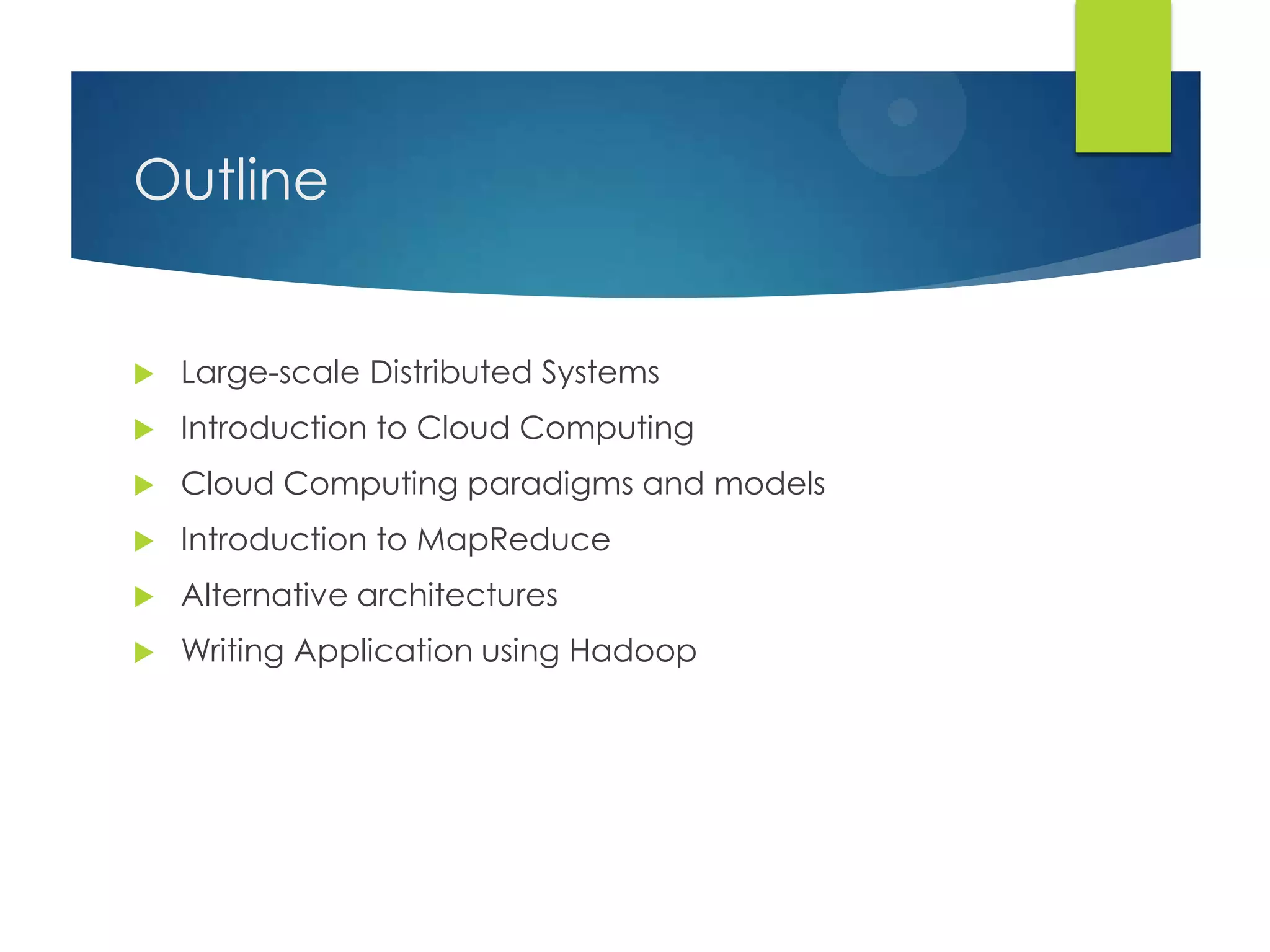 This document provides an overview of cloud computing and distributed systems. It discusses large scale distributed systems, cloud computing paradigms and models, MapReduce and Hadoop. MapReduce is introduced as a programming model for distributed computing problems that handles parallelization, load balancing and fault tolerance. Hadoop is presented as an open source implementation of MapReduce and its core components are HDFS for storage and the MapReduce framework. Example use cases and running a word count job on Hadoop are also outlined.