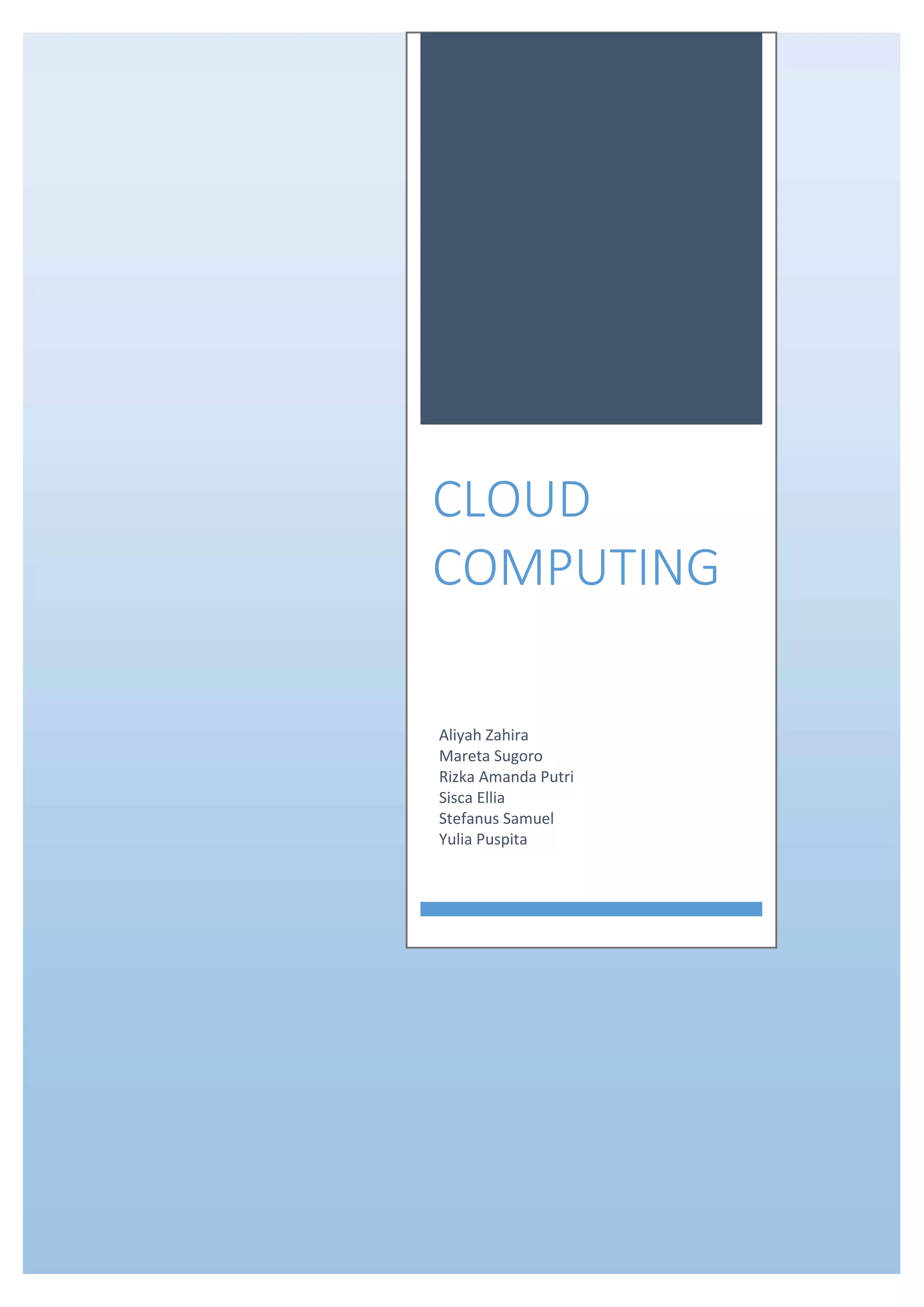 Cloud computing merupakan revolusi baru dalam teknologi komputasi yang mengubah cara sistem dikembangkan. Terdapat berbagai tipe penerapan cloud computing seperti SaaS, PaaS, dan IaaS yang masing-masing menyediakan perangkat lunak, platform, dan infrastruktur sebagai layanan. Dokumen ini membahas pengertian, cara kerja, risiko, syarat, layer, dan contoh penerapan cloud computing."