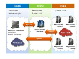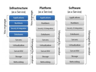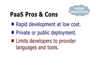 The document provides an overview of cloud computing, highlighting its utility-based pricing model and comparison with grid computing. It discusses various cloud service models such as SaaS, PaaS, and IaaS, along with the defining characteristics and types of cloud environments including private and public clouds. Key challenges and trends in cloud computing, along with examples of service providers, are also mentioned.