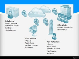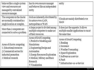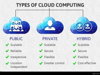 The document provides an overview of cloud computing, including its key concepts and components. It discusses the different deployment models (public, private, hybrid, community clouds), service models (IaaS, PaaS, SaaS), characteristics, benefits, history and evolution. Communication protocols used in cloud computing like HTTP, HTTPS and various RPC implementations are also mentioned. The role of open standards in cloud architecture including virtualization, SOA, open-source software and web services is assessed.