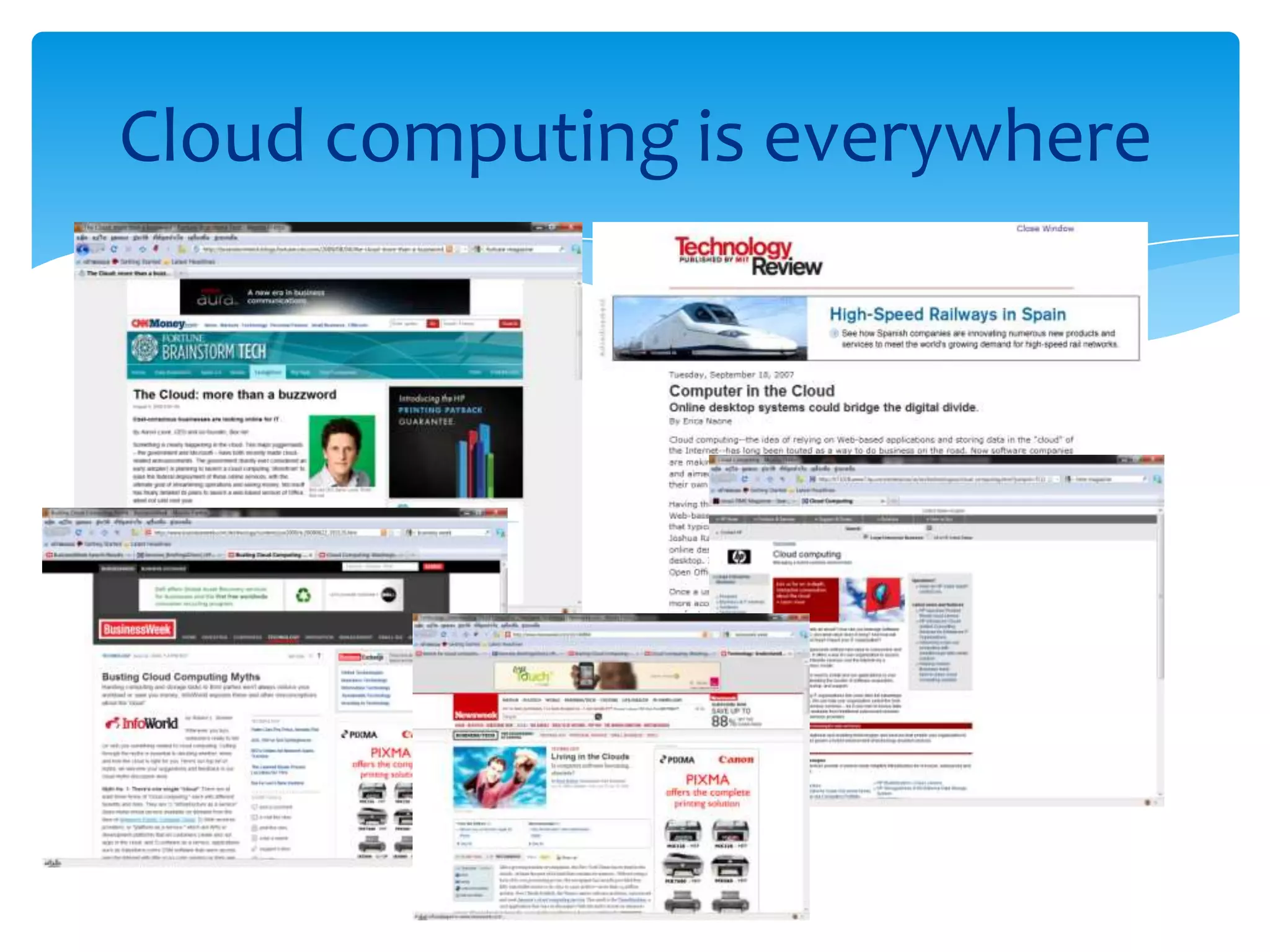 This document discusses cloud computing and provides an overview of key concepts. It begins by looking at new demands for IT infrastructure including capacity, security, availability, and scalability. It then examines challenges of high operating costs and complexity. Benefits of cloud computing are outlined such as flexibility, scalability, and lower costs. Common cloud service models like SaaS, PaaS, and IaaS are defined along with deployment models. Examples of existing cloud systems like Amazon AWS, Google App Engine, and Microsoft Azure are also mentioned.